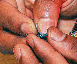 <p>Many might raise their eyebrows thinking what sort of art can be created out of this tiny object. Absolutely amazing that this minute piece of lead has been shaped and carved to incarnate Lord Ganesha and Lord Krishna. <br /><br />Artist Sanjay Dayanand is the creator of Lord Ganesha and Lord Krishna in this minuscule object. He does it without using lenses. He demonstrated his artistic skill in recently held programme at Paryaya Shiroor mutt. Sanjay was always eager towards unraveling mysterious world of art. He was associated with art right from his childhood as his family would offer poojas to clay idol of Lord Ganesha during Ganesha Chathurthi. Gradually, he developed interest in the clay craft and he himself was able to carve clay idol of Lord Ganesha for the festival at his home.<br /><br />“Interest in art came naturally to me. I was delighted with the clay idol of Lord Ganesha and I just wanted to try out with clay art. This was the beginning and I slowly took up painting. Consequently, I took up painting and drawing as my hobby,” says Sanjay, speaking to City Herald.<br /><br />He started his experimentation with art with chalk pieces. He would carve Taj Mahal and Lord Ganesha in 2 to 3 cm chalk pieces. Later, he took up rice grain as his challenge and was successful in carving Lord Ganesha in rice grain. His talent was acclaimed in the competition that was held at Vododara, Gujarat way back in September 2010. Now it is the turn of pencil lead to get shaped into Lord Ganesha and Lord Krishna. He takes 10 minutes to carve Ganesha and 12 minutes to sculpt Krishna. He uses HB pencil lead for Ganesha and 5B lead to carve Krishna. He is currently pursuing his studies in animation and wants to take up career exclusively committed to art related activities. His passion for art runs in every vein of his blood as he wishes to breathe art in all possible way taking it as profession as well as hobby. </p>