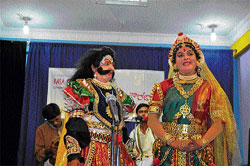 <p>Directed by Krishnamurthy Thunga, the artistes presented two prasangas, Jambavati Kalyana and Bhasmasura Mohini very lively. The event was inaugurated by Nagaraj Seregar, chief administrative officer, Karnataka State Pollution Control Board. <br /><br />Padmaja Kumari, registrar of Karnataka Yakshagana Bayalata Academy, was the chief guest. The performance began with a song in praise of Lord Ganesha. After that Jambavati Kalyana commenced with the court scene of Satrajita, the king of Dwaraka. The king sends his brother Prasena to kill wild animals which are threatening his subjects.<br /><br />Prasena goes hunting, wearing Syamantaka Mani, a precious stone which gives prosperity.<br /><br />He is killed by a lion on his way. Jambavanta, a bear who saw this incident kills the lion and retrieves the Mani and gifts it to his only daughter, Jambavati.<br /><br />Satrajita accuses Krishna of killing Prasena as he had asked for the stone earlier. In order to clear his name, <br /><br />Krishna goes in search of Mani. Krishna tracks the cave of Jambavanta. But Jambavanta refuses to return the precious stone. A fight takes place between the two and finally, Jambavanta realises that Krishna is none other than Lord Rama. He agrees to return the Syamanthaka Mani and also offers his daughter Jambavati in marriage to him.<br /><br />Here the credit goes to child artistes who made it an entertaining piece. Chitkala Thunga enacted the role of Prasena, Satwik as Satrajita, Hemanth as lion and Koustubha and Uttham who portrayed the characters of forest guards, showed that they were no less than any experienced artiste.<br /><br />The next up was Bhasmasura Mohini, which got huge appreciation. This performance was extended for a while on the request of the audience. Performances by skilled artistes like Radhakrishna and Ravi Madodi made it a visual delight. <br /><br />Padyas (background songs) were rendered by Krishnamurthy Thunga and Subbarao Hebbar. <br /><br />“When we gave a performance a few years back here, people were not much aware of yakshagana. Now, even without publicity, we get good audience. In spite of the cricket match, people came in big numbers. Our aim was to bring navarasas on stage. That’s why we selected two prasangas and treated the audience with varied emotions,” said Radhakrishna, an artiste and one of the organisers.<br /></p>