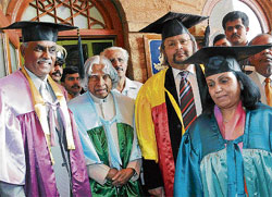 <p>Kalam was responding to a query from a class eight student on the recent radiation leak crisis in Japan and its consequences on India, at a function organised by the Agastya International Foundation. <br /><br />He said the Fukushima nuclear power plant had suffered an unprecedented combination strike of being hit by a “shockload” due to an earthquake followed by a “sheerload” due to the devastating tsunami. <br /><br />“Such a combination of double shock was not anticipated. The nuclear power plants in India are safe,” Kalam said. <br /><br />Chief Secretary S V Ranganath announced that the State government had signed a Memorandum of Understanding with Agastya International Foundation to improve universal access, retention and achievement levels in select government schools in 15 most backward districts in the State. <br /><br />Addressing the first convocation ceremony of Great Eastern Management (GEMS) business school of the Mysore Maharaja Institute of Higher Education and South Asia University at Bangalore Palace, Kalam told the 32 students who were passing out that <br />“what worked yesterday, won’t work today.” Giving an example, he said national resources defined power “yesterday, but today, it is knowledge.” <br /><br />Srikantadatta Narasimharaja Wadiyar, the trustee of the school, said, eventually the institute would evolve into a university. <br /><br />Sustainable development<br /><br />Addressing the students of Kristu Jayanti College here, Kalam, while speaking of sustainable development in the context of the recent global economic downturn and natural calamities impacting human life and economic assets, said technology has brought the world together and there might very well be a new global order.</p>