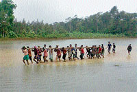 <p>Hundreds of electricity poles fell breaking electricity connection to the villages. One such unfortunate village is the Nalvathekre village. <br /><br />This village is setting an example for others as the villagers have come together to install the toppled electric poles by themselves through Sharamadaana. The villagers are carrying the poles and installing it in the villages wherever it is necessary to help the Chescom officials provide them electric connection all over again.<br /><br />The village is submerged in water but it is facing drinking water problem due to power failure. Chescom officials as precautionary measure cut off power supply to this village when river Cauvery crossed danger-level. Due to this, there has been no power in the village over the last 10 days. <br /><br />The works of installing poles has been proceeding in full swing in the village and youth from the village have been toiling hard to take the electric poles amidst the inundated fields, thereby bagging huge appreciation from Chescom officials as well as the local residents. <br /><br />Since the villagers have taken up about half of the responsibility of the Chescom, the burden of Chescom has reduced to a large extent and now Chescom has started laying the cables on the poles and the village is expected to see light by Wednesday evening. <br /><br />All in all, heavy rains or floods, the people of Nalvathekre village have taught a lesson as to how effectively works can be done when general public join hands with the Government departments, rather than leaving everything upon the government and officials.<br /></p>