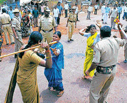 <p>Police resorted to lathi-charge when the protesters tried to stop a vehicle bound for Hyderabad, it is learnt, injuring many protesters including women and aged persons.<br />Enraged, the protesters threw stones at police personnel injuring seven policemen, including Market Station Sub-Inspector Ali Sab.<br /><br />The protesters, from Gunnalli, were protesting against the Forest Department stopping work on asphalting of the road from Shahapur Gate to their village.<br /><br />The protesters led by Karnataka Tigers Struggle Committee, began their protest in the morning, blocking traffic on the Bidar-Zaheerbad road. <br /><br />Efforts by Assistant Commissioner Khushbu Goyal to persuade them to give up their failed, and the police lathi-charged the demonstrators.</p>