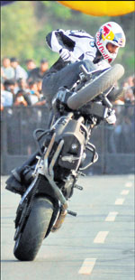 <p>Then again, there are a few instances when you have no choice but to stand well behind and ask ‘how’? more than ‘why’? and whether gravity has lost its edge.<br /><br />No, gravity hasn’t lost it. It’s just that these select bunch of people don’t seem to acknowledge its existence. And anyone who is gifted enough to view one of them in action often wonders if all the theories pertaining to gravity are true.<br /><br />Chris Pfeiffer is probably the leader of this gravity-defying bunch. The 40-year-old four time World stunt biking champion from Germany, who had the crowd in a frenzy during his performance at the Palace Grounds earlier in the week, was on his second visit to India and Deccan Herald caught up with him for a chat.<br /><br />Excerpts:<br /><br />When and why did you start stunt biking?<br /><br />I started when I was five years old. It’s a long story. In short, my dad had quit racing when I was born and returned to the track when I was five. So I got on the bike and I said I wanted to ride. <br /><br /><br />That’s where it began! My first bike was a Sachs 100 and we would just cruise around at that time. I really got hooked to bikes when I went off-roading. I had a whole lot of off-roaders when I was growing up but my first was the Suzuki 50 and during that time I took part in a couple of competitions, and I really got into the bike riding scene. <br /><br />Given the abundance of asphalt, I started trying out some stunts around college when I was around 23. In 1996, I took it (stunt biking) up seriously. But after a point, it came to a point where I had to decide between off-roading and stunt biking. Off-roading was getting increasingly hard to compete in, and so I decided to give stunt biking my all and it was a great decision.<br /><br />Does your off-roading background help your body get into a better position than most people while attempting such stunts? <br /><br />Off-roading certainly helps in terms of keeping my balance and stuff. My advice to anyone <br />taking up stunt biking is to start off-roading first. Off-roading helps you get acclimatised to different conditions and that’s very important. Stunt bikers from California practice on perfect tracks and when you put them on a track with a little water and stuff they won’t perform. It’s a matter of getting your eye in for everything.<br /><br />From the last time you came down to now, you seem to have added a whole lot more stunts to your art. How do these stunts come about? <br /><br />I develop most of my stunts but some of them are borrowed and then improvised on. I keep practicing and I keep working on something or the other so I can entertain the crowd with something new every time. It’s about practicing hard and you know inspiration strikes when least expected. <br /><br />Stunt biking in India...<br /><br />The racing standards in India are really good. Some of the boys I’ve seen are very talented and they have these Pulsars to race on. <br /><br />Those bikes are really good for stunts. Again, it’s about practice and not where you come from.<br /><br />You’re 40-years-old now and seem quite fit and up for it but will there be an end-of-the-line moment not too far from now? <br /><br />So long as I push myself and continue to innovate and come up with new stunts, I will remain in the sport. I’m waiting for someone young to come so I pass on the baton to but I’m still the only one. It’s only a matter of time but when that time is, only time can tell.<br /><br /><br /></p>