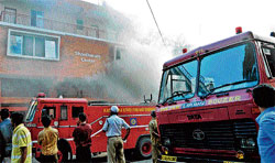 <p>Nine fire tenders rushed to the spot and put out the blaze after a two-hour-long battle. No construction worker was injured. <br /><br />Electrical short circuit is said to have triggered the fire. The value of the property destroyed is yet to be estimated.<br /><br />The fire force staff said they received a call around 4.30 pm alerting them about a fire in a three-storey building. <br /><br />The construction workers had stored the materials on the second floor.<br /><br />“It was not the fire, but the dense smoke that caused tension. The smoke had spread to the two floors and it took nearly two hours for the firemen to control the blaze,” said Chief Fire Officer Ramesh.<br /><br />The owner of the building has been identified as Vikas.</p>