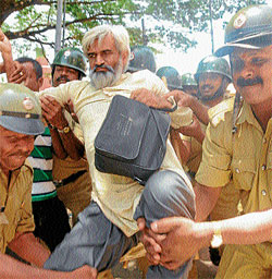 <p>The police arrested a group of CPI (M) activists when they staged a protest in front of office of Medical Education and District In-Charge Minister S A Ramdas in the city without seeking permission from the Department of Police. Later, they were released.<br /><br />Tension prevailed in front of Ramdas’ office in Vidyaranyapuram on Monday, as the members of Centre for Indian Trade Union (CITU) and All India Agricultural Workers Unions (AIAWU) staged a demonstration alleging irregularities in the implementation of the Mahatma Gandhi National Rural Employment Guarantee scheme (MNREGS).<br /><br />The police asked the protesters to withdraw their demonstration on the ground that they have not taken permission from the police commissioner. <br /><br />However, the protesters refused to heed to police request and said they need not take anybody’s permission as they came there to pour in their woes before the minister. <br /><br />This made the police to take all of them into custody and forcibly dumped them inside the police van. Earlier, in his address, CPM leader and the vice- president of the state unit of All India Agricultural Workers Union GN Nagaraj said that the employment scheme to farm labourers failed to reach out to the unemployed labourers in rural areas. <br /><br />“There is no proper implementation of the project. <br /><br />The officials are involved in the embezzlement of funds meant for providing employment to poor agricultural labourers. <br /><br />Thousands of labourers have not received the wages for the work they done two years ago. Besides, the officials are using machineries for manual work,” he said. <br /><br />Varalakshmi, general secretary of CITU said there was a serious setback for the MnREGS in the state. The Government has proposed to implement the scheme through private players, she added. <br /><br />Secretary of AIAWU Puttamadu and others were present. About 60 activists who were held were later released.</p>