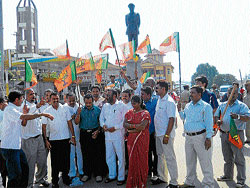 <p>bjb</p>.<p>The workers burnt the effigy of the Governor and shouted slogans against the Governor and the Congress. <br /><br />Speaking on the occasion, Zilla Panchayat President Ravi Kushalappa alleged Governor of being a mere puppet in the hands of the Congress.<br /><br />“Governor acts as an agent of the Congress. The Governor is trying to destabilise the BJP government,” he said.<br /> <br />The dream of the Governor to dismiss the State government and impose the President’s rule will not be materialised. If President’s rule is imposed, then people of the State will give tough answer to the Congress in the election. <br /><br />The BJP State Committee member M P Sunil Subramani also spoke. <br /><br />Zilla Panchayat vice-president H M Kaveri, Zilla Panchayat member Ballaranda Mani Uthappa, S N Rajarao, CMC members and others took part in the protest. <br /></p>