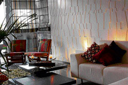 <p>It is said that the first impression is always the lasting impression. As you step into Aakriti Saraf’s three-bedroom penthouse on Old Airport Road in Bangalore, you are surrounded by a sight so beautiful and classy, it takes your breath away. Being an interior designer and an artist herself, she understands the importance of home interiors that is timeless, practical, and comfortable. She says, “A house has to be a home, warm and inviting. I have played around with loose pieces of furniture and artifacts, but the fixed pieces of furniture and structure have been kept simple so that they last. <br /><br />The movable artifacts give me an opportunity to change the look of my home as and when I want to and the fixed décor is subdued and chic without being overwhelming. Each space in the apartment has been used to its maximum potential.” <br /><br />The door handle at the entrance is a precursor to the exciting décor times ahead. Made out of a long, wooden cheese platter with a metal lotus on the side, and converted into a door handle, the idea incorporates ingenuity, creativity and playfulness. <br /><br />A stone niche at the entrance works as a bench as well as a decorative alcove between the foyer and the dining area where one can hang flowers, paintings or place colourful cushions for an added effect. As one steps into the home through the glass partition door, with beautiful flower motif cut-outs, one encounters a breathtaking view, charming in its simplicity yet classy and chic. <br /><br />One of the walls in the living area created like a maze of projections in the wall which adds a glamorous and graphic touch, acts like a wall panel and is highlighted with strategic lighting. It’s a backdrop to the living area, creating drama and style.<br /><br />The opposite wall has a slide and shut door which acts as panel with cut-out flower motifs and somber back lighting during hours of entertainment in the evenings and throughout the day, it’s a pooja room, sheathed in golden brocade curtain, which looks more like a work of art, with its beautiful Tanjore paintings of gods.<br /><br />Balcony, the focal point<br /><br />What follows after the living area is sheer poetry in vision, the focal point of the house, which is the balcony. On one side of the balcony, Aakriti has installed a no-nonsense granite bench covered with a gaddi and colourful cushions and throws, which is offset by cool grey textures of the walls which has a motif inspired by Ganesha in vibrant hues. <br /><br />This wall colour sets the ambience of the area, cool, casual yet stylish. The wooden flooring and the silver painted rattan chairs juxtaposed against the silver walls, instills quick drama to her home. The balcony overlooks the sky and green lands. It is like bringing greenery and the sky into the house, giving it an instant facelift.<br /><br />Aakriti camouflages a column in the balcony with a beautiful art deco pillar on the adjacent wall. It serves as a backdrop for beautiful artifacts collected over a period of time. A huge green glass bottle which she picked from Chor Bazaar, with purple orchids, liven up the place. Large pastel candles complete the setting, adding splendour and stylishly transforming the balcony into an ultimate retreat. Adjacent to it is an old side board made of solid wood which conceals a well-stocked bar. <br /><br />The old-world grandeur gets a modern dramatic twist with beautiful knick knacks, photo frames, a painting and flowers. Aakriti says, “This balcony serves as a perfect haven for us, and makes us feel close to nature.” <br /><br />Aakriti uses abstract graphic patterns in muted colours from her own collection to help create an interesting ambience in an otherwise simple guest room. <br /><br />These art works are clustered together in the wall, making a style statement of their own. The hideous duct in the guest bathroom has been covered by a shutter with storage space. The shutter is further camouflaged with a print-out of what looks like a colourful shelf with pictures of bathroom knick knacks. <br /><br />Uncluttered bedroom<br /><br />She has kept the master bedroom uncluttered, making it her sanctuary for calm and relaxation. <br /><br />The bedroom has huge storage space, which doesn’t look overwhelming. <br /><br />Two wooden pieces of tropical art she bought on one of her trips to Bali, have been converted into a handle to reduce bulkiness of the huge wardrobe and is easily the most intriguing design in her home. The room is kept simple and timeless. <br /><br />The dining area houses an old brass thali which has been converted into a clock. <br /><br />The grand presence of this rustic brass piece offers a sleek counter point to the rest of the wall which is kept bare and white. Splashes of bright Indian hue by way of cushions, throws and green plants unite the other elements of the space thereby creating an inviting home. The cozy furnishings and the comforting colour schemes are a sure winner in her home. A home reflects the persona of the person living in it. Aakriti’s home is a reflection of that. She says, “for me, less is more. None of the artifacts used here are in your face and very bold. They have been chosen with great care and a lot of thought has gone into each piece of furniture. <br /><br />“I have made a conscious arrangement of furniture and decorative pieces that I can change with regard to both style and content according to my preference.”</p>