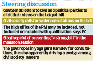 <p>Responding to the civil society activists’ threat to take to the streets after Monday’s meeting ended on a bitter note, Home Minister P Chidambaram and Human Resources Development Minister Kapil Sibal said there was “no unanimity of opinion.” <br /><br />Chidambaram, who is also a member of the lokpal drafting committee, said there “are many views. And all views need to be considered. It is necessary to seek a consensus.” <br />He said Finance Minister Pranab Mukherjee has sent letters to the chief ministers of all states and political leaders seeking their opinion on the bill. He hoped that the work on the bill will be completed by June 30. Views have been sought, among others, on whether prime minister should be brought under the purview of the Lokpal.<br /><br />Chidambaram said the high office “may be included”, “not included” or “included with qualification.”<br /><br />Strong bill<br /><br />Sibal said Monday’s meeting was constructive. “The government is going to present ‘a strong bill’ during the monsoon session of Parliament,” he said. There have been differing opinions on six key issues, including bringing prime minister under the bill, structure of the body (single member of multi-body) and bringing ministers, MPs and judiciary under the scrutiny of the Lokpal.<br /><br />These are the issues on which one cannot have a “take-it-or-leave-it” kind of attitude, the minister said in a subtle reference to civil society represented by Anna Hazare. The bill has been drafted by the Law Ministry and sent to all ministries for feedback. <br /><br />But no draft bill has been approved by the Centre. Responding to the press conference of Chidambaram and Kapil Sibal, Hazare’s team said consultations should not be limited to chief ministers and political parties. <br /><br />“The government should organise public consultations. It should also consult other civil society organisations,” Swami Agnivesh, leader of India Against Corruption, told Deccan Herald on Tuesday.<br /><br />The Centre has roped in yoga guru Ramdev, who had spoken against bringing the PMO under the Lokpal, for consultations. <br /><br /><br /><br /><br /></p>