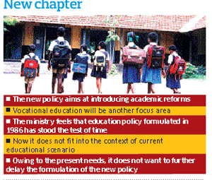 <p>The Ministry of Human Resource Development has realised the need to formulate a new national policy on education after 24 years, as the policy formulated in 1986, during the regime of the then prime minister, Rajiv Gandhi, is now unable to meet the present global challenges despite some amendments were carried out in the policy in 1992.<br /><br />“There is an urgent need to frame a new national policy on education as the existing policy is too old to meet new challenges emerging out of globalisation now. The last policy was framed in the year 1986. And some minor modifications were undertaken in 1992. Since then, our education scenario and nature of employment opportunities have changed substantially,” a ministry official told Deccan Herald.<br /><br />The new policy will seek to bring substantial changes in education system by introducing academic reforms so as to bring improvement in quality of education. The vocational education will be another focus area, besides increasing access and quality in education to meet the international standards, to take advantage of the demographic dividend of the country and to fulfill the aspirations and rights of youth to gainful employment and contribute to national productivity.<br /><br />Test of time<br />The ministry feels that the 1986 education policy has stood the test of time, but neither does it fit into the context of current educational scenario nor can it meet the present day employment requirements. <br /><br />Considering the present needs, the Centre does not want to cause further delay in formulating a new education policy, sources in the ministry said. <br /><br />A national-level conference of vice-chancellors, organised by the University Grant Commission in March, too, had recommended a new education policy at the earliest. <br /><br />It had suggested that it was important to look into the kind of a policy framework appropriate for analysis of access, equity and quality in higher education in India.<br />The participants underlined that development of tertiary education is largely dependent on the output of secondary education as the secondary school sub-sector contributes substantially to access and equity concerns observed at the entry level of the undergraduate courses.|<br /><br />“The interventionist approach by the university and the state can significantly influence and expand opportunities for the underserved by assessing the transition loss from secondary to tertiary education and recommending strategies to improve this situation, and promoting strategic planning and management at the university level for its greater engagement with society,” the vice-chancellors suggested.<br /><br />While the ministry is considering the recommendations of the vice-chancellors, it has already initiated a nation-wide survey on school education. <br /><br />The eighth All India School Education Survey is jointly being conducted by the ministry, National Informatics Centre and all the state governments.<br /></p>