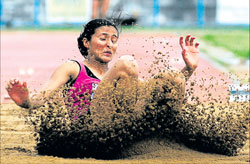 <p>Technique, though wasn’t her strongest ally on the day and even though the gold landed firmly in her pocket with a meet record to boot, Mayookha fell tantalisingly short of her main target at this meet. <br /><br />On the opening day of the 51st Inter-State Athletics Championships, Mayookha’s quest for an Olympic berth and her battle for the top spot with MA Prajusha were the main points of interest. While she towered above Prajusha, the qualification mark stayed a touch away -- two centimetres away to be precise.<br /><br />Mayookha secured the gold with her first-round effort of 6.63 metres, leaving Prajusha (6.47M), way behind and bettering Anju George’s meet record by a good 10 centimetres. Her decent series on the day seemed to show she was on the right path and the jumper herself didn’t seem to be too bothered by the narrow miss.<br /><br />“This was my first competition with the full approach. There were some glitches in my technique but I am confident of sorting it out,” said Mayookha. “The Asian Championships is my next target, perhaps the mark will come there. I know I have a 6.65M jump in me,” she added, while her coach Syam Kumar wasn’t pleased at all with his ward’s show. “I was targeting 6.75, the ‘A’ qualification mark but she is still working on her technique,” he said.<br /><br />After starting with 6.63, Mayookha had jumps of 6.54 and 6.30 before fouling her next two attempts. She closed out the competition with a 6.60M leap -- her hair touching the sand and depriving her of a better mark. Prajusha, meanwhile, came close to her best of 6.50M, a decent display by her own admission at this stage of the season. The long distance duel between Preeja Sreedharan and Kavita Raut didn’t really set the track ablaze, with the duo preferring a slow approach in the 10000M final. The race followed a predictable pattern, with the two exchanging lead several times. Kavita, winner in the Indian segment of the World 10K last week, led going into the final lap, with Preeja following her like a shadow.<br /><br />The Asian Games champion then waited and waited before unleashing a kick, with about 120 metres left. Kavita held on till the final 50 metres but Preeja surged ahead at that point and pulled clear to win in convincing fashion. Her time -- 34:33:48 to Kavita’s 34:33.64 -- though was well outside her national record of 31:50.47 set at the Guangzhou Asian Games last year. “For the work we have put in now, we can only run in the 33-plus range,” said an exhausted Preeja.<br /><br />Meanwhile, Asian Games hurdles champion AC Ashwini made her appearance in the 400M heats in the morning, qualifying for the final with a 53.57-second timing. National record holder Manjeet Kaur also made it through, clocking 55.94.<br /><br />Results:<br />Men: 10000M: Kheta Ram (Rajasthan) 29:20.35, 1; Suresh Patel (Uttar Pradesh) 29:25.42, 2; V L Dange (Maharashtra) 30:10.45, 3.<br />Pole vault:<br />Discus throw: Arjun (Delhi) 53.56 metres, 1; Sunil Kumar (Jharkhand) 51.23, 2; Vikas Poonia (Rajasthan) 49.17, 3.<br />Women: 10000M: Preeja Sreedharan (Kerala) 34:33.48, 1; Kavita Raut (Maharashtra) 34:33.64, 2; L Surya (Tamil Nadu) 35:27.18, 3.<br />Long jump: Mayookha Johny (Kerala) 6.63 metres, 1; M A Prajusha (Kerala) 6.47, 2; Shalu Chaudhary (Delhi) 6.24, 3. <br />Hammer throw: Manju Bala (Rajasthan) 55.94 metres, 1; Anitha Abraham (Kerala) 54.88, 2; Sarita (Gujarat) 52.66, 3.<br />Javelin throw: Saraswathi (Tamil Nadu) 52.00 metres, 1; Suman Devi (Uttar Pradesh) 46.95, 2; Rupinder Kaur (Punjab) 46.11, 3.</p>