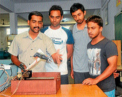 <p>The prototype was developed by students of Department of Mechanical Engineering, Vidyavardhaka College of Engineering (VVCE) Hare Ram Singh, Ritwik D, Ronish Alinkil and Sandesh K S under the guidance of their lecturer K S Ravi.<br /><br />While drilling is one of the most important operations in manufacturing industries, it needs skilled workers for efficient completion of projects. The prototype developed by the students solves the problem as it does not need skilled labour. Users can enter the coordinates using a keypad attached to the drilling arm. <br /><br />Based on the coordinates entered, the robotic drilling arm moves to the location where the hole has to be created.<br /><br />The prototype offers drilling operations to be carried with the use of 6V batteries, which are readily available in the market. The robotic arm can be used to implement drilling operations on materials of low weight and density.<br /><br />Speaking to Deccan Herald, student Ronish said conventional machines require constant supervision and they have to be manipulated and handled every minute to minimise loss. He said their prototype gives higher accuracy level and can be used without the need for any human supervision. The prototype at present can drill up to 260 mm.<br /><br />Describing the applications of the arm, Ronish said it can be widely used in the manufacturing process of printed circuit boards and also electronic circuits used to make switches.<br /><br />He said the prototype with minor modifications could be a substitute to conventional drilling machines used in saw mills, which cost around ` 20,000. He said the prototype at a similar cost could improve efficiency and accuracy.</p>