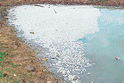 <p>The department of fisheries were informed about it on Tuesday and the assistant director visited the spot for assessing the situation on Wednesday. <br /><br />Speaking to Deccan Herald, he said the tank water has been sent for laboratory test and upon examining the dead fish the exact cause for the same will be known.<br /><br />He also opined that large number of fish that had collected from river and other lakes during monsoon had begun breeding and the excess number of fish in the small tank must have led to oxygen deficiency, one of the reason for the fish death.<br /><br />Meanwhile, gram panchayat has swung into action and have begun clearing the tank of dead fish which is being buried at a distance. <br /><br />The tank comes under the Shivenahalli gram panchayat limits, but it had not taken up fish breeding. However, the water which collects during monsoon season brings fish from rivers and tanks and that has led to natural breeding. <br /><br />Gram Panchayat member Ningappa told Deccan Herald that there is no chance of contaminating the water with pesticides and ruled out incidence of mixing poison to the tank. <br /><br />Farmers washing ginger yield, which is grown using liberal quantities of pesticides and chemical fertilisers in the tank water also affects the aquatic species. But the locals say that though they were involved in washing the ginger produce last year, denied washing them in the tank this year.<br /><br />Meanwhile, the department has also advised the farmers not to use the tank water until lab results are announced and not allow cattle to drink them until further information.</p>