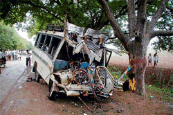 <p>The deceased are Durgappa Fakkirappa Koravar of Karjagi, Gangavva Ramanna Mannur of Naganur, Suresh Joshi, Veeranagouda Shivanagouda Patil, Rekha Medleri of Karjagi, Lakshman Hombaradi of Kanavalli, Channamma Puttappanavar of Katenahalli and Gadigeppa Malagi of Hosahalasur. The details of another deceased were not known. <br /><br />The mini bus was on its way from Karjagi to Haveri. The driver lost control of the vehicle as the axle broke off. <br /><br />One person was killed on the spot, three died on the way to the hospital and one person died at the district hospital in Haveri. A total of 16 injured were admitted to the Karnataka Institute of Medical Sciences (KIMS) in Hubli, of whom four persons breathed their last there.<br /><br /> The condition of five persons at KIMS is said to be critical. The other injured are being treated at the district hospital in Haveri.<br /><br />Police rushed to the spot and removed the bodies from the mangled remains of the mini bus. A case has been registered at the Haveri Rural police station.</p>