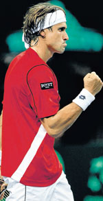 <p>David Ferrer sealed the tie for Spain, who were without their top-ranked player Rafael Nadal, when he beat Mardy Fish 7-5, 7-6, 5-7, 7-6 in the first of the two reverse singles rubbers after a titanic struggle that lasted more than four hours.<br /><br />The dead rubber, scheduled to be played between Andy Roddick and Feliciano Lopez, was then called off with the result of the tie already decided.<br />“Spain have never beaten USA in this country,” Spain's non-playing captain Albert Costa said.<br /><br />“To win against Roddick, Fish and the Bryans, I think this is a great team. For us it's historic.”<br /><br />Spain had won Friday's two opening singles matches to seize control of the tie but the Americans gave themselves some hope of winning the best-of-five tie when the twins Bob and Mike Bryan won Saturday's doubles.<br /><br />“I'm very proud of all the guys for all the efforts they put in all the matches. We definitely laid it all out there,” US captain Jim Courier said.<br /><br />Spain, who have won the Davis Cup four times, in 2000, 2004, 2008 and 2009, host France in the semifinals in September after last year's runners-up beat Germany 4-1.<br /><br />France beat Spain 5-0 in the quarterfinals last year and Costa said his players were determined to avenge that loss.<br /></p>