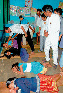 <p>The DDPI and others visited the school in the wake of students suddenly taking ill after consuming mid day meals prepared at the school. Some of them were even admitted to the Government Hospital at Kollegal on Thursday evening.<br /><br />After getting to know about the incident, DDPI and Tahsildar on special duty Rangaswamaiah, mid day meals Assistant Director, ZP Education Standing Committee Chairman Koppali Mahadeva Nayaka, ZP Member Nagendra Babu and others visited the school and took stock of the situation. Villagers demanded that the head master and staff members should be transfered out of the place since they had not displayed any sense of responsibility about mid day meals and the level of bad hygiene that exists in the place. <br /><br />ZP members took the officers to task about total chaos relating to preparing mid day meals in the school. They instructed the students who were lying on the planks out of ill health, be sent to the hospital immediately. <br /></p>