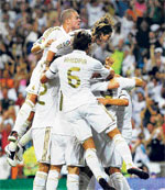 <p>Away goals from David Villa and Lionel Messi left Barca the happier of the teams, after Real had created better chances, and their night was crowned with news that Spain midfielder Cesc Fabregas had finally agreed his move from Arsenal.<br /><br />Real had taken the lead through Mesut Ozil after only 13 minutes in a vibrant atmosphere, and Xabi Alonso grabbed the equaliser early in the second half.<br /><br />The second leg is at the Nou Camp on Wednesday. Barca gave new signing Alexis Sanchez his debut in an unfamiliar line-up that also included 20-year-old midfielder Thiago Alcantara in place of Xavi.<br /><br />In the absence of Carles Puyol and Gerard Pique, both suffering with injuries, Javier Mascherano and Eric Abidal teamed up in the centre of Barca’s defence, where they were quickly found out.<br /><br />Karim Benzema, who has scored eight times for Real during the pre-season, beat Abidal on the edge of the area and squared for the advancing Ozil to slot past Victor Valdes.<br />Penned back in their area, Barca struggled to mount a single shot until the 35th when Messi fed Villa wide on the left.<br /><br />The Spanish striker cut inside Sergio Ramos and from the edge of the area curled a shot over Iker Casillas and into the top corner. On the stroke of halftime, Barca hit Real with another sucker punch.<br /><br />Messi scampered away toward the area, and as white bodies converged on him, a lucky deflection saw him emerge unmarked into the area to slide the ball underneath Casillas. Real lifted their game again after the break and when Alonso drilled a low shot in the corner, Barca were once again on the rack.<br /><br />With the memories of last season's bad-tempered clashes in the league, King's Cup and Champions League still fresh in mind, tempers started to flare, adding extra spice to the atmosphere, but Real failed to capitalise on their chances.<br /><br />Guardiola sought to tighten up his side introducing Xavi and Pique, and he successfully defended his unbeaten record as coach at the Bernabeu.<br /> </p>