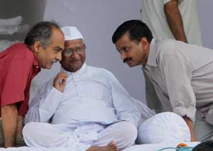 <p>Waving tricolour, people stood in serpentine queues to enter the sprawling ground in the heart of national capital to join the Gandhian activist in his fight for a strong Lokpal bill.<br />Inside Ramlila Maidan, Anna supporters delivered speeches slamming politicians and urging people to question the authority of Parliament. <br /><br />Enthusiastic followers of Hazare chanted patriotic slogans in between the high-decibel speeches delivered from the platform just below the stage.<br /><br />Among over 10,000 people who had gathered at Ramlila Maidan, majority included euphoric urban youths.<br /><br />Youngsters with tricolor painted on their faces chanted catchy slogans and danced to tunes of patriotic songs.<br /><br />Some of the supporters, wearing Gandhi cap, roamed around the ground holding placards with anti-corruption slogans inscribed on them.<br /><br />Some posters slammed Union Minister Kapil Sibal, who was one of the government’s representatives on the joint drafting committee formed to prepare the anti-corruption legislation. One such placard read: “Mr Sibal, corruption is to be treated not to be debated”.<br /><br />The number of people offering voluntary services to the movement has swelled, as more than 2,000 people got their names registered at the information centre set up on the right side of Hazare’s stage.<br /><br />Also, a health desk set up by the volunteers will provide free medical aid and emergency services to supporters who fall sick during the 15-day protest.<br /><br />Although the majority of the supporters belonged to the urban middle class, few came from rural India as well.<br /><br />Rajendra Krishna, 59, had come from a village in Haridwar under the banner of Akhil Vishwa Gayatri Parivar. Krishna, who is not aware of the basic difference between the government’s Lokpal and Jan Lokpal bill, said he “came here to participate in the fight for the rights of poor”. Unlike yoga guru Baba Ramdev’s fast, which allegedly had right-wing element in it,Team Anna has tried its best to show that the movement demanding stringent Lokpal bill is secular. While replying to a question related to the allegation that the movement is backed by the RSS, which has forced members of a particular religion not to participate in the fight, Anna Hazare said: “All those people making such allegations should be sent to mental hospital.” <br /><br />To show that the fight against corruption is all inclusive, Team Anna organised a small iftaar at the ground for supporters from Muslim community.<br /></p>