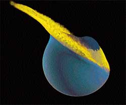 <p>Earth once had two moons, which merged in a slow-motion collision that took several hours to complete, researchers propose in Nature.<br /><br />Both satellites would have formed from debris that was ejected when a Mars-size protoplanet smacked into earth late in its formation period.<br /><br />Whereas traditional theory states that the infant moon rapidly swept up any rivals or gravitationally ejected them into interstellar space, the new theory suggests that one body survived, parked in a gravitationally stable point in the earth’s moon system.<br /><br /><br /><br />Several such “Lagrangian” points exist, but the two most stable are in the moon’s orbit, 60 degrees in front or 60 degrees behind.<br /><br />Traces of this ‘other’ moon linger in a mysterious dichotomy between the moon’s visible side and its remote farside, says Erik Asphaug, a planetary scientist at the University of California, Santa Cruz, who co-authored the study with Martin Jutzi, now of the University of Berne.<br /><br />The moon’s visible side is dominated by low-lying lava plains, whereas its farside is composed of highlands. But the contrast is more than skin deep. The crust on the farside is 50 kilometers thicker than that on the nearside. The nearside is also richer in potassium (K), rare-earth elements (REE) and phosphorus (P) – components collectively known as KREEP. <br /><br />Crust-forming models show that these would have been concentrated in the last remnants of subsurface magma to crystallise as the moon cooled. What this suggests, Asphaug says, is that something “squished” the late-solidifying KREEP layer to one side of the moon, well after the rest of the crust had solidified. An impact, he believes, is the most likely explanation. “By definition, a big collision occurs only on one side,” he says, “and unless it globally melts the planet, it creates an asymmetry.” <br /><br />Asphaug and Jutzi have created a computer model showing that the moon’s current state can be explained by a collision with a sister moon about one-30th the moon’s mass, or around 1,000 kilometers in diameter. Such a moon could have survived in a Lagrangian point long enough for its upper crust and that of the moon to solidify, even as the moon’s deeper KREEP layer remained liquid.<br /><br />Meanwhile, tidal forces from earth would have been causing both moons to migrate outward. When they reached about one-third of the moon’s present distance (a process that would take tens of millions of years), the sun’s gravity would have become a player in their orbital dynamics.”<br /><br />“The Lagrange points become unstable and anything trapped there is adrift,” Asphaug says. Soon after, the two moons collided. But because they were in the same orbit, the collision was at a relatively low speed. “It’s not a typical cratering event, where you fire a ‘bullet’ and excavate a crater much larger than the bullet,” Asphaug says. “Here, you make a crater only about one-fifth the volume of the impactor, and the impactor just kind of splats into the cavity.” <br /><br />Like a pancake <br />In the hours after the impact, gravity would have crushed the impactor to a relatively thin layer, pasted on top of the moon’s existing crust. “You end up with a pancake,” Asphaug says. The impact would have pushed the still-liquid KREEP layer to the moon’s opposite side. Apshaug’s theory isn’t the only attempt to explain the lunar dichotomy. Others have invoked tidal effects from earth’s gravity, or convective forces from cooling rocks in the moon’s mantle. <br /><br />“The fact that the nearside of the moon looks so different to the farside has been a puzzle since the dawn of the space age,” says Francis Nimmo, one of the authors of a 2010 paper in Science proposing tidal forces as the cause. But despite his competing model, Nimmo (a colleague of Asphaug’s at Santa Cruz, but not an author of the new study) calls the new theory “elegant.”<br /><br />And Peter Schultz of Brown University in Providence, RI, calls it “interesting” and “provocative,” despite his own theory involving a high-angle collision at the moon’s south pole, which he believes would have pressed crustal material northward to form the farside highlands.<br /><br />“All this is great fun and tells us that there are very fundamental questions that remain about the moon,” he says. NASA’s upcoming GRAIL mission, designed to probe the moon’s interior using precise measurements of its gravity, may help figure out what happened billions of years ago. “But in the end,” Schultz says, “new lunar samples may be necessary.”</p>