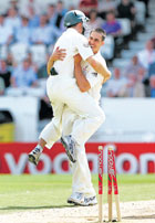 <p>The touring side ended England's entertaining lower-order resistance 20 minutes after lunch on the third day, Mitchell Johnson bowling Graham Onions to dismiss the hosts for 263 and seal victory by an innings and 80 runs. <br /><br />"We've played some good cricket here and I am very proud of the guys for bouncing back and playing so well," Australia captain Ricky Ponting said. <br /><br />"All credit to our bowlers. They bowled brilliantly on the first day and that set it up for us. We dominated the match from the first ball." <br /><br />Graeme Swann, who made 62, had shared a dazzling century partnership with Stuart Broad in the morning session to frustrate Australia and ensure that England avoided a record margin of defeat. <br /><br />"We have to take this on the chin," England captain Andrew Strauss said. "This is no time to panic. We need to stay calm and make sure we get the game plan right for the Oval.<br /><br />"If we are looking to make excuses, then we are barking up the wrong tree,” Strauss added. “It is hard to put a finger on why the performance was so bad. <br /><br />"We didn't bat well enough on the first day, it was far below the level we should be playing at and we must learn lessons from it." <br /><br />England resumed on 82 for five following their collapse on Saturday and nightwatchman James Anderson struck the second ball of the day for four but he edged the next one from Ben Hilfenhaus to Ponting at second slip. <br /><br />Matt Prior played two sumptuous square drives for four but he fell for 22, nibbling at a Hilfenhaus outswinger and edging the ball to wicketkeeper Brad Haddin who took a brilliant diving catch. <br /><br />Broad was dropped by Peter Siddle on 18, a very difficult chance at mid-off, and he struck several crisp boundaries including four in one over from Stuart Clark. <br /><br />He reached his half-century, made from only 42 balls, with a crashing straight drive for four off Siddle and Swann also went on the attack, the pair adding 49 runs in three overs from Clark and Siddle. <br /><br />Broad was dropped again on 53 by Johnson running back at long-off and Swann's quick single brought up the 100 partnership off 73 balls. <br /><br />Broad survived yet again when Simon Katich failed to grasp another tough catch on the boundary but his luck finally ran out on 61 when he pulled Siddle and Shane Watson held the chance at deep square leg. <br /><br />Swann continued to play his shots, reaching his half-century with a hook for six off Siddle and England took lunch on 245 for eight. <br /><br />Swann was first to go after the interval, driving at a wide ball from Johnson to give Haddin an easy catch and Johnson clean bowled Onions for a duck to complete impressive figures of five for 69. <br /><br />England went into the Test without either Kevin Pietersen or Andrew Flintoff, two men who had played such an influential role in their conquest of the Australians in the Ashes at home four years back.<br /><br />Pietersen, one of the stars with the bat in a series England won 2-1, has been ruled out of the series after undergoing surgery, while Flintoff was forced to miss the fourth Test with a knee injury after failing a late fitness test.<br /><br />Australia have been without pace spearhead Brett Lee for the first four Tests. Lee had been expected to return to action at Headingley, but a lack of match practice kept the New South Welshman on the sidelines yet again.<br /><br />The series-deciding Test will begin at traditionally batting-friendly The Oval in London on Thursday, August 20.<br /><br />SCORE BOARD<br />England (I Innings): 102 all out<br />Australia (I Innings): 445 all out<br />England (II Innings, O/n: 82/5):<br />Strauss lbw Hilfenhaus 32<br />Cook c Haddin b Johnson 30<br />Bopara lbw Hilfenhaus 0<br />Bell c Ponting b Johnson 3<br />Collingwood lbw Johnson 4<br />Anderson c Ponting b Hilfenhaus 4<br />Prior c Haddin b Hilfenhaus 22<br />Broad c Watson b Siddle 61<br />Swann c Haddin b Johnson 62<br />Harmison (not out) 19<br />Onions b Johnson 0<br />Extras (B-5, lb-5, W-5, nb-11) 26<br />Total (all out, 61.3 overs) 263<br />Fall of wickets: 1-58, 2-58, 3-67, 4-74, 5-78, 6-86, 7-120, 8-228, 9-259. <br />Bowling: Hilfenhaus 19-2-60-4, Siddle 12-2-50-1, Clark 11-1-74-0, Johnson 19.3-3-69-5.<br /></p>