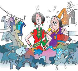 <p>All my suggestions of suitable clothes that she already possessed, including a brand new black one that she had purchased just the previous month, met with immediate disdain. I was afraid that her scoffing would make me question my inherent sense of style. We both drove down to the nearest shopping mall.<br /><br />We walked by the entire stretch of the street with shops screeching discounts and offers till she found the exclusive shop that was ‘the’ place to shop, as suggested by her ‘well-informed’ peer gurus.<br /><br />She wasn’t sure if she needed to go in for a skirt, a long dress or the traditional salwar kameez. <br /><br />“Browse through all three and choose what you like best!” was my first suggestion.<br /><br />She was aghast. “I will stick out like a sore thumb if others are dressed differently… I will find out what others are planning!” She whipped out her mobile and sent instant messages. I wisely shut myself up before, “You should have done this yesterday,” escaped my mouth. Time slipped by as she waited for the reply and she desultorily saw clothes on each rack. She was back after some time with a more severe scowl.<br /><br />“What happened?” was my tentative query.<br /><br />“None of them are sure! I think they are purposely not keeping me in the loop.”<br /><br />“Why should they?” I consoled her and then tried again, “Choose a dress you don’t have.” Holding up a skirt for her view, I said, “This yellow one looks nice.”<br /><br />“It makes me look like a new born chick,” she scoffed.<br /><br />I wanted to remind her that a person who is always mad like a wet hen deserves no better! Holding on to my temper, I tried again.<br /><br />“What about this?” I asked, holding up a beautiful cranberry-shaded dress.<br /><br />“Oh, no,” she shrieked, “it looks like I have just recovered from a bout of measles.”<br /><br />The next half an hour appeared to be never ending. “This dress makes me look fat and that one makes my legs appear too thin!” she went on.<br /><br />It made me wonder how a person can be both fat and thin at the same time. I was foolish enough to ask her for an explanation and she looked at me pityingly and said that she felt that it ‘made’ her look fat.<br /><br />“Yes, but how can something make you look fat when you are not?” I was fast losing my patience and I felt one need not be an Einstein to come to that conclusion. But it appeared that I was wrong.<br /><br />“I am not thin, look,” she said gesturing at an anorexic girl walking by. I was immediately transported to Somalia or wherever it was where people were suffering from acute famine. I made the mistake of saying she was too thin!<br /><br />“She is not! She is perfect and I am fat!”<br /><br />Unconsciously, I sucked in my tummy which had hitherto not affected me and wondered what my daughter must be thinking about me... obese? <br /><br />She pointed out to a peach and cream skimpy affair and asked me my opinion.<br />“Well…nice,” I told her cautiously, “but, where is the rest of it?”<br /><br />The sales assistant sniggered. My daughter was mortified. “This is the entire dress,” she hissed.<br /><br />By now my tired brain wanted a cup of tea and my poor feet wanted rest. I looked skeptically at a delicate affair which seemed to be a seat of some sort and with great trepidation I seated myself on it and told my daughter that she can come back with her choice, if she makes any.<br /><br />After almost an hour later, she came back in a far more cheerful mood and said, “I think that the new black dress that I purchased last month is the best… and I have beautiful footwear and other accessories to go with it!” <br /><br />I tried hard to control my tongue, but I simply couldn’t and my mean bone spoke up, “What if you wake up fat tomorrow?”<br /><br />Her scowl was back!</p>