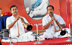 <p>Nadaswaram is a wind instrument and counts on top among popular classical musical instruments. Considered auspicious, it is a key instrument that’s played in Hindu weddings and temples.<br /><br />However, what makes Kasim and Babu special is they are Muslims and learnt music from their maternal grandfather Sheikh Chinna Moulana. <br /><br />They are also special Nadaswaram artistes of Tirumala Tirupati Devasthanam. Their grandfather’s words, “Music is my religion, perfection is my aim,” is what inspires them.<br /><br />Brothers Kasim and Babu were recently in the city for a concert organised as part of Ganesha festival by SPVGMC Trust at V V Mohalla. Speaking to Deccan Herald after an enthralling two-and-half hour performance, Kasim said: “Music knows no religion.”<br /><br />Hailing from Karavadi village of Prakasam district in Andhra Pradesh, the duo’s grandfather Sheikh Chinna Moulana was said to a be an ardent follower of Lord Ranganatha. Kasim and Babu have performed together for more than 12 years.<br /><br />Replying to a query on the changing trends in music, Kasim said changes were inevitable.<br /><br /> “During the time of our grandfather, concerts would be held for five hours. Nowadays, it is for only two-and-half hours. It is challenging for the artistes to reproduce a five-hour concert in two-and-half hours.”<br /><br />Keeping the tradition alive<br /><br />With an aim to keep the tradition of Nadaswaram alive, the duo is running a school called Sharada Nadaswara Sangeetha Ashram, which has six students. “We will take more students and pass on the tradition to the next generation,” he added.<br /><br />The duo has also made sure that the recordings of their grandfather are preserved.<br /><br />Reminiscing about his training, Kasim remarks, “Training was very hard. We used to wake up at 4 am and manage both college and music. Our grandfather was a taskmaster and it was hard to please him. He wouldn’t allow us to take notes. We memorised all of them. But it helped me a lot, later.”<br /><br />Asked to comment on the next generation, he said, “They try to take as many shortcuts as possible and want instant success.”</p>