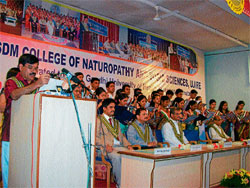 <p>Minister for Medical Education S A Ramdas said that two separate universities will be set up in the state to deal with Ayurveda and Yogic Science and Nursing and Paramedical courses. <br /><br />Speaking after handing over the degree certifcates to the students at SDM Naturopathy and Yogic Science College at Ujire on Friday, he said a mobile unit with all the modes of medicine will be started at all the district headquarters. The mobile unit would be an attempt to create awareness on yoga and naturopathy. The mobile unit will be flagged off from Dharmasthala soon. <br /><br />The Minister said yoga and naturopathy are effective medicines. There is a need to carry out more research. The degree holders should take the challenges posed by other system of medicine, he said. <br /><br />Speaking on the occasion, Dharmasthala Dharmadhikari D Veerendra Heggade said that one should not have inferiority complex over naturopathy. The naturopathy treatment centres have already been started at 10 taluk headquarters in the State. Ten more such centres will be started soon, he added. <br /><br />Prof S Prabhakar, SDM College Principal Dr B Yashovarma, College of Naturopathy and Yogic Science Principal Dr Prashanth Shetty and others were present. <br /><br />Minister Ramdas felicitated Heggade for receiving Sir M V Award, on the occasion.</p>