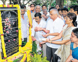 <p>To commemorate the occasion, a Palike park located in front of Vishnuvardhan’s house in Jayanagar ‘T’ Block was named after him as ‘Vishnuvardhan Vishranti Vana’.<br /><br />Speaking after renaming the park, his wife Bharati said her husband was a nature lover and that she was happy that a park in front of her house was named after him.<br /><br />Jayanagar MLA B N Vijaykumar, actors Ramesh Aravind, Bank Janardhan, Shobharaj, Meghana, Anirudh, K Manju, BBMP Commissioner Siddaiah, Mayor Sharadamma and Deputy Mayor S Harish were present on the occasion.<br /><br />Thousands of fans thronged Abhiman Studio where the veteran actor was laid to rest in 2009. <br /><br />As part of the birthday celebrations, Vibha Charitable Trust organised health camps, blood donation and eye donation camps. Actors Shivaram and Jai Jagadish were present at the studio<br /><br />Vishnuvardhan’s fans protested in front of the Karnataka Film Chamber of Commerce’s office (KFCC) stating that even two years after the actor’s death, the government is yet to begin work on Vishnuvardhan’s memorial. The fans have suggested the setting up of a gallery depicting the actor’s life besides a library and a yoga centre.<br /><br />Vishnu lookalike<br />There was a huge applause from the audience when a junior artiste on stage said: “Vishnuvardhan has gone nowhere. He is here, in me and in you. And he will be here forever.” <br /><br />Ravi S Koti, the junior artiste, won the hearts of Vishnu’s ardent fans with his mimicry of the legendary Kannada film actor at Ravindra Kalakshetra on Sunday.<br /><br />While Ravi has been a mimicry artist for two decades, it was only in 2008, that he decided to adorn the image of Karnataka’s most respected film actor. <br /><br />On Sunday, he traveled all they way from his village in Bijapur and performed at Ravindra Kalakshetra. <br /><br />Ravi, dressed in a white kurta, a beaded necklace and a white bandana, resembled the late actor. A three-day movie festival dedicated to Vishnu began to commemorate the actor’s birthday. </p>