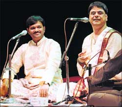 <p>The artistes sang a variety of songs, mostly composed by Surdas. The songs, were about the love that Surdas as a disciple, had for Krishna and also about Krishna’s disciples and <br />loved ones. <br /><br />The artistes, O S Arun and Sanjay Abhyankar, sang a wide range of classical songs in Hindi for the audience. Their performance was accompanied by music of the quartet who performed along with them on stage. <br /><br />One of the ragas, Jasumati Man Abhilash Kare composed by Surdas, talks about Yashodhara who ponders as to when Krishna’s feet will touch the ground. She wonders when he will start calling her ‘Ma’ and speak other words as well. She, just like any mother, is anxious and excited about her child growing up. <br /><br />The next performance by Sanjeev Abhyankar was Sabse Uchi Prem Sagai. This song upheld love as the most important and beautiful thing in the entire world. The song was so soulful and soothing that members of the audience closed their eyes to feel the beauty of the song. His beautiful voice along with the music had the audience enthralled. The next song was performed by O S Arun who showed his ease with the high notes. This was followed by Ankhiyan haridarasana ki pyaasi, which was a melodious song about the disciples of Krishna who are left pinning for him. The torture and pain of his departure is felt by everybody and they are left thirsty and empty without him. Sanjeev Abhyankar sang this touching song in his melodious voice.<br /><br />Bhakta Jana Vatsale, a lively song, was performed by O S Arun. This had the audience clap and sing along. Vidhi, a member of the audience said, “Listening to Bhakti Sangeet is always a great pleasure and these two singers were so wonderful and skilled. It was a very good performance.”</p>