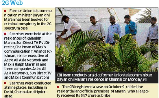 <p>A first information report (FIR) was also registered against him and his brother Kalanidhi Maran, the promoter of Sun TV group. CBI sleuths searched Maran’s residence and nine other locations in Delhi, Chennai and Hyderabad. He is accused of receiving Rs 547 crore as kickbacks from a Malaysian company.<br /><br />A senior CBI official told Deccan Herald that the agency “has got incriminating documents” during the searches.<br /><br />Maran was under the scanner ever since former Aircel Chief C Sivasankaran approached the investigating agency on June 6, alleging he was not given telecom licence and Maran (the then telecom minister) forced him to sell his company Aircel to Malaysia-based Maxis group owned by T Ananda Krishnan. <br /><br />The licences were issued after the deal was struck. Sivasankaran had also alleged that Marans got kickbacks in the form of investments made by the Maxis through Astro network in Sun TV (owned by Maran family). Raids were also conducted in the residential and office complexes of Apollo Hospital executive director Suneeta Reddy who, according to a senior CBI officer, “helped the deal.”<br /><br />Suneeta Reddy is the daughter of Pratap Reddy, the founder of Apollo Group of Hospitals. She was questioned by the agency last month.<br /><br />Apart from Maran brothers, the CBI has booked Ralph Marshall, Director of Astro All Asia Networks, T Ananda Krishnan and three private companies on a charge of criminal conspiracy under the IPC and Prevention of Corruption Act.<br /><br />“The CBI has registered cases against Maran brothers, Ralph Marshall and T Anandkrishnan and three companies under Section 120b of IPC (criminal conspiracy) read with 13(2) with 13 (1)(d) and Section 7 and 12 of the Prevention of Corruption Act. The case was registered on October 9. Searches were conducted at Delhi and Chennai,” CBI spokesperson Dharini Mishra said.<br /><br />The CBI has found that there was no evidence of coercion in the sale of Aircel, but got substantial evidence that Maran had favoured the takeover of the company by Maxis and deliberately delayed Sivasankar’s files, sources said.<br /><br />While 74 per cent of Aircel stakes were bought by Maxis, Suneeta Reddy purchased 26 per cent stakes facilitating the deal, sources said. <br /><br />Dayanidhi Maran, nephew of DMK chief M Karunanidhi, was heading the communications ministry between 2004 and 2007. He was forced to step down as Union Textile Minister in July this year after the CBI submitted a status report in the Supreme Court saying that he used his tenure in the sale of Aircel to the Maxis.<br />An official confirmed that “investments around Rs 500 crore to Rs 600 crore were made by Astro, a subsidiary of Maxis, in Sun TV and bought its shares at much higher prices.”<br /><br />The CBI will soon send a letter rogatory to Malaysia in the case.</p>