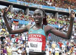 <p>Kenya’s pride in long-distance running has endured many a blow from their African rivals in recent times and the glee at getting one back at the Ethiopians was all too obvious in the Kenyan ranks as Linet Masai scripted a spectacular victory in the World Championships 10,000M final on Saturday night.<br /><br />Masai outsprinted Meselech Melkamu and Meseret Defar in a dramatic finish, leaving Ethiopia shell-shocked. In a slow race, Masai had joined the leaders along with fellow-Kenyan Grace Momanyi in the last few laps but Defar and Melkamu seemed to be in control even with 50 metres left. That was when Masai stepped in to alter the script in stunning fashion.<br /><br />“I can’t believe it, I can’t believe it,” said Masai. “The plan of the Kenyan team was to assist ourselves toward the end. In the last 100 metres, I saw I was so strong, so I decided to push a bit harder.” The 19-year-old Masai, who was fourth at the Beijing Olympics, ran to a plan to upset the Ethiopian applecart. “With three kilometres to go, I decided to push the pace higher so that maybe I could be there at last. When I did that, I was expecting to win,” she said.<br /><br />That pace forced the Ethiopians to dig deep and even though they led into the straight, they didn’t have that deadly final kick. The presence of Tirunesh Dibaba, the defending champion who pulled out of the 10,000 due to a leg injury, would have made a difference, but Masai refused to believe so. “It doesn’t matter if she is there or not. This year, I raced against her over 5,000 metres in New York and she was second. So her presence would not have made any difference,” retorted Masai. The Masai family is targeting a double here, with Linet’s elder brother Moses also lining up in the 10,000M. Moses, who was fourth in the Bangalore World 10K last year, was also fourth at the Beijing Olympic Games and has promised to do better than his sister here.<br /><br />The race itself had its share of drama, with a faulty start going unnoticed. The 22 runners were lined up in two batches with the first batch taking the start a few metres ahead, but there were no cones on the track indicating when they should cut into the inside lane.<br /><br />The officials also misread the photo finish and initially placed Defar as third. She had actually been pushed to the fifth spot by a fast-finishing Wude Ayalew, also of Ethiopia. A night of confusion and misery for the Ethiopians then, but the Kenyans weren’t complaining.<br /></p>