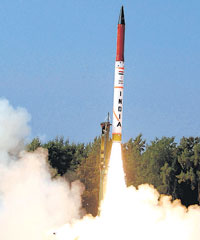 <p>Official sources said the surface-to-surface ballistic missile was launched from a “road mobile system” parked in one of the launch pads of the premier missile testing centre, also known as interim test range (ITR), at 9 am.<br /><br />The 20 metre long indigenously built missile has the capability to hit a target at a distance of more than 3,000 km, carrying both traditional as well as nuclear warheads up to 1 tonne. The weight of the missile is about 17 tonnes.<br /><br />“The missile has the capability to carry strategic warheads for the Indian armed forces and has provided a fantastic deterrence to the country. The missile will be produced more in numbers and delivered to the armed forces as early as possible,” highly placed DRDO sources said.<br /><br />ITR Director S P Dash said the missile had a textbook trajectory and reached the pre-designated target in the international waters of the Bay of Bengal with a very high level of accuracy. “All the mission objectives were fully met and all the systems functioned perfectly till the end,” he said.</p>