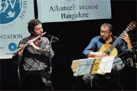 <p>An evening of musical delight was organised jointly by the Bangalore School of Music in association with the Alliance Francaise recently.<br /><br />The concert featured two musicians, maestros in their own right who kept Bangalore’s music lovers rivetted with their performance playing with perfect harmony and understanding. <br /><br />There was Yohann Egret, a 30- year-old flute professor from France, who plays with different groups as well performs as a soloist in different genres from Classical to World Music. In 2004, he created the Resonances, a quintet that explored the richness of World Music as well as a piece of musical storytelling of The Little Prince.<br /><br />The second performer, Shyamant Behalf, is a guitarist who began playing the classical guitar at the age of fourteen and studied under Geneviève Chanut at the Ecole Normale de Musique de Paris perfecting his skill as a world class musician. Since his return to Delhi in 2007, he has given a number of concerts, both as a soloist and with different ensembles.<br /><br />He has formed a guitar quartet in Delhi with some of his students who are now full-fledged musicians themselves. The first half of the concert was devoted to French composers. It began with Tango, a piece by Eric Marchellie.<br /><br />Then followed a Suite — Buenos Aires by Maximo Diego Pujol consisting of 4 short pieces, viz: Pompeya, Palermo, Santelmo and Microcento. Although they were short, they required impeccable technique and the duo executed them to perfection. The third piece was Guajira by Emilio Pujol, then came a contemporary composition by Bozza called Imagine and last piece of the first half Entracte by Jacque Ibert.<br /><br />Interspersing the entire performance with bursts of spontaneous applause, the audience kept the energy levels of the evening high even as the duo took a very short break before settling down for the second half which was a tribute to Brazilian and Argentinian composers. <br /><br />The first was a composition by Celso Machado consisting of four short pieces, viz: Pacoca, Algodo, Dolce and Sambossa. Then came the climax of the evening which was undoubtedly Pode Moleque Piazolla’s History of the Tango, a sensuous earthy group of four compositions that took the audience back in time to the end of the 19th century, where the popular dance first originated.<br /><br />The first piece aptly named Brothel was full of powerful sensual movement. <br /><br />Shyamant Behalf explained to the audience how the long lines of men waiting their turn at the highly patronised brothels in Argentina would be swept up by the catchy beat of the loud music playing that they would end up dancing with each other. <br /><br />The second piece Cafe set in a later period when the tango became more refined followed by Nightclub when the dance became far more elegant and sophisticated and ending on a flourish with Concert.<br /><br />Judging by the cries of ‘encore’ from the rapt audience, the entire performance was a great success and the duo returned to take their bows, playing Adios Muchachos by Carlos Gardel, a lively exciting piece that ended the evening on a high note.<br /></p>