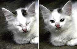 <p>Tiny's brothers and sisters began walking soon. Once again, she was the last to find her feet. She began to suspect she was different from her siblings when she found she couldn't run as fast. She walked with a funny lop-sided gait - a limp, because one of Tiny's hind legs was shorter than the rest.<br /><br />The family put the kittens up for adoption. One by one, all the kittens except Tiny found takers. No one wanted to adopt a lame cat. She was quite lonely, except for momma Cleopatra who didn't like being disturbed from her siestas. So Tiny tiptoed around the house on her soft padded feet.<br /><br />One day, old Mrs. Lazarus dozed off in her armchair whilst knitting. The bright blue ball of wool rolled from her lap onto the floor. Curious, Tiny approached timidly - the ball moved when she nudged it with her paw. She began playing football with it - pouncing on it and rolling it all over the room. The yarn kept unraveling, winding itself around her until she ended up a tangled mess. Tiny started mewing pitifully which woke Grandma Lazarus. She was certainly not pleased to find the kitten tangled in a mass of her blue yarn. She scolded Tiny, "You good for nothing kitten - look at the mess you've made!" <br /><br />Poor Tiny hung her head in shame and slunk out the back door. She found a nice sunny spot in the yard to bask in. Something tickled her cute little nose, waking her from her catnap. Brushing it off with her foreleg she saw a gorgeous green and black butterfly. Tiny tried catching it, playfully chasing it around the compound and onto the road but the butterfly eluded her staying just out of reach.<br /><br />Suddenly she heard a low growl followed by a loud bark and found a large Doberman bearing down at her at full speed. Tiny ran for her life. The Doberman was hot on her heels; gaining on her. Now she knew what it felt like to be at the other end of a chase. Just when she thought there was no escape, she spotted a letterbox. The opening seemed large enough for her tiny frame to squeeze through. She took a mighty leap, landed on the mailbox and crawled into its slit. The dog continued barking and scratching at the mailbox before giving it up as a lost cause.<br /><br />Tiny was safe. Whew! That was a close shave. Thinking it prudent to stay in the box till the coast was clear she curled into a ball and went to sleep. Naina had been trying very hard for a long time to convince her mother to let her have a pet but her mum didn't want the hassles of looking after one. Naina prayed every night that she would change her mind. On her return from school, Naina opened the letterbox to check for mail and to her utter astonishment found a cute, multicolored, patchwork, little fur-ball of a kitten fast asleep inside. She picked Tiny up in delight and held her close, stroking her and planting kisses on her head. Tiny purred with pleasure and opened her big saucer like deep blue eyes. It was love at first sight for both of them. Tiny had never felt so wanted before. She was sure she was in safe hands. "At last I've found someone who likes me", she thought.<br /><br />Naina rushed into the house holding Tiny in her hands crying excitedly, "Look what came in the post Ma! Please, pleeease… can I keep it? I promise I'll take care of it; besides cats are good at keeping themselves clean." Her mother sighed and said, "Alright. If no one comes looking for her, you can keep her". "You're the best, mum!" said Naina kissing her cheek, "And so are you", she said to Tiny, tickling her. <br /><br />She didn't mind that Tiny walked with a limp, in fact, it made her love and care for her all the more; For Naina too wore a special brace on her leg to help her walk, having suffered from Polio as a child. Of course, no one came looking for Tiny. Naina read on the net that the Japanese consider Calico (tri-colored) cats lucky. Both Naina and Tiny felt blessed and fortunate to have found each other. They were quite inseparable and neither let their handicap get in their way. Naina renamed Tiny "Techni" after her technicolored coat and she sure did bring a lot of color into their lives and home.</p>