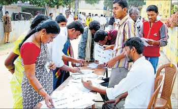 <p>The byelections to Vemagal (Kolar), Boodideru (Mulbagal) Zilla Panchayat constituencies and Malur TMC 5 Ward, which had created much furore, concluded peacefully on Tuesday.<br /><br /></p>.<p>Except for a few instances of heated exchange of words between voters and the police the voting was largely peaceful.<br /><br />Voting which was lacklustre until 11 am gained pace after noon. 84.67 per cent people turned out to vote.<br /><br />Vemagal<br /><br />Candidates of all the three major parties in the State Congress, BJP and the JD(S) and independent candidates supported by district-incharge Minister Varthur Prakash and D R Shivakumar Gowda were seen wooing voters at the poll booths since morning.<br /><br />As the Vemagal Zilla Panchayat constituency is reserved for Backward Classes ‘A’ Group women, whoever wins in the byelection from the constituency has the chance of being a chief contender to the Zilla Panchayat president’s post. This element added colour to the byelection in Vemagal.<br /><br />EVM malfunction<br /><br />Voting was delayed by half an hour at Singenahalli polling booth in the taluk owing to EVM malfunctioning.<br /><br />The voting resumed soon after Assistant Commissioner R S Peddappaiah and tahsildar Dr Dayanand visited the spot and set right the error. <br /><br />Argument<br /><br />At Kurugal, villagers protested for a while accusing the police for reprimanding the election agents.<br /><br />Voters also expressed dissatisfaction over the police abusing them when their behaviour was questioned. A verbal duel too ensued between the voters and police.<br /><br />MLC casts vote<br /><br />V R Sudarshan, MLC cast his vote at booth number 187 at Government Pre-University College in Vemagal village.</p>.<p>Highlights</p>.<p>* Total voters: 27,843<br />* Men: 14,278<br />* Women: 13,565<br />* Poll booths: 42 </p>