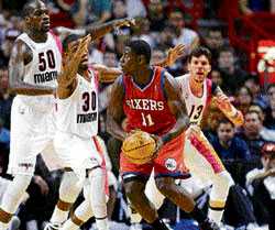 <p> Chris Bosh sparked the Miami Heat to a third home win in a row on Saturday, draining 30 points in a 113-92 victory over the Philadelphia 76ers. <br /><br /></p>.<p>Bosh scored eight points during an 11-4 run at start the fourth quarter, pushing the Heat lead to 92-73 and effectively putting the game out of reach for the 76ers. <br /><br />Dwyane Wade missed his third consecutive game with a sprained ankle and his sixth overall this season, although the Heat are 6-0 in his absence. <br /><br />"Everyone has stepped up their play with D-Wade being absent, and we expect nothing less," Heat forward LeBron James told reporters. "It's great to get some home wins; it's great to beat some really good teams, but we've got to continue to push forward." <br /><br />The win moves the Heat (11-4) into a tie at the top of the Southeast Division with the Orlando Magic. <br /><br />The 76ers (11-5) comfortably lead the Atlantic Division by five games over the New York Knicks despite losing two of their last three games. <br /><br />Miami held a one-point advantage after the first quarter and extended the margin to seven points by halftime. <br /><br />"They (Miami) were sharp tonight from the start," said Philadelphia coach Doug Collins, whose team was missing centre Spencer Hawes with a strained Achilles tendon. <br /><br />"We fought and hung around for a little bit, but they wore us down. We need our full arsenal and then some." <br /><br />James added 28 points and pulled down nine rebounds for the Heat. Reserves Lou Williams and Evan Turner led the 76ers with 22 and 16 points respectively. <br /><br />Other results: Atlanta: 121 bt Cleveland: 94; Denver: 119 bt NY Knicks: 114 (OT); Detroit: 94 bt Portland: 91; Oklahoma City: 84 bt New Jersey: 74; Chicago: 95 bt Charlotte: 89; Dallas: 83 bt New Orleans: 81; Houston: 105 bt San Antonio: 102; Memphis: 128 bt Sacramento: 95; Utah: 108 bt Minnesota: 98.</p>