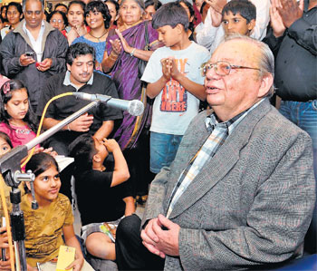 <p>Never mind that the narrow streets of Frazer Town were clogged with cars parked on either side of the road, never mind there wasn’t any space to move around, people just wanted to see their hero, Ruskin Bond, in flesh and blood. <br /><br /></p>.<p>At the launch of Ruskin Bond’s latest book, ‘The Adventures of Rusty’, at the Crossword Bookstore, kids and grown-ups gathered in large numbers to watch the event. <br />The book was unveiled after a quick round of introductions and people were eager to hear Ruskin read excerpts from the book. <br /><br />‘The Adventures of Rusty’ brings together his best, funniest and most exciting adventures. There’s Toto, the monkey that travelled in a bag on a train; an encounter with a leopard; life as a young writer in far away London; and returning back home.</p>.<p> The book has it all. After reading selected portions from the book, it was time for <br />interactions. A few kids from the audience recited a few of Ruskin Bond’s poems, <br />including ‘Grandma Climbs a Tree’. <br /><br />Half-way through, one of the boys forgot a line and Ruskin had to complete it for him. <br />When asked what he liked writing about, Ruskin said, “I love writing about people and my encounters with them. All kinds of characters find place in my books.”<br /> <br />There was a long line of people, who waited to get the book autographed, and Ruskin, who appeared quite tired with all the travelling, patiently sat through the whole event. <br />“I am no good traveller but I do travel if it is absolutely necessary,” he said. <br /><br /> Those who were present were quite familiar with Ruskin’s body of work and had read most of his books. In addition to clicking pictures with him and shaking his hands, people had a lot of personal questions to ask him. He willingly answered them all. <br /><br />Roshan, a class ten student said, “I love Ruskin’s book on adventures and his ghost stories. I keep a track of his work and as soon as I came to know about the launch, I dragged my parents out here to see him.” <br /> <br />Pramodh Prashanth, a professional, said that he grew up on a diet of Ruskin’s stories. “The stories are as exciting and adventurous as the man himself. I didn’t want to miss chance to see him.”<br /><br />Priyadarshini Prabhakaran, a housewife, observed, “in addition to being a great storyteller, very few people know that he has also written a cook book with the help of his cook. I’ve been trying to get a copy of that. I am here to ask him more about that,” she said. </p>.<p>The recipient of several national and international awards, three of Ruskin’s <br />stories have also been filmed. Rusty’s stories were also made into a TV serial, Ek Tha Rusty, a few years ago. Ruskin lives in Landour, Mussoorie, with his extended family.</p>