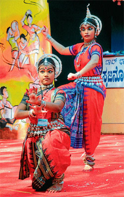 <p>Dr Shivaram Karanth Biological Park in Pilikula was abuzz with chirpy children giggling and talking loud. As the programme scheduled for the day was dance events little children with their anklets on painted a merry picture at the venue.<br /><br /></p>.<p> On the second day of Bal Bharath Srujanotsav-2012, the children had a merry time as the tiny tots and the older kids danced on the stage portraying the tradition of the State they belong to. The concept of unity in diversity had come alive at Srujanotsava. <br /><br />On Dr Shivaram Karanth stage, the children performed various dance forms like Kuchipudi, fishermen’s dance, Durga dance, Mohini Attam etc spreading the sweet fragrance of rich Indian culture.<br /><br />There were two kids, both aged about seven years, from Hyderabad who took the audience by surprise with their Kuchipudi performance. The members of Vadodara Bal Bhavan, Gujarat displayed the tribal folk dance of Gujarat where Lord Krishna teases Gopikas. <br /><br />A group of boys and girls from Kerala danced to a folk song of Kerala tribe, which was based on the theme of offering prayer to ‘Naga Kanye’. Children from Churney Road Bal Bhavan, Mumbai again brought the folklore to the stage as they danced to a folk song of fishermen community. The members of Goa Bal Bhavan mesmerised the audience and other children as they sang ‘Yaya Mayeyo’ and rocked the stage. <br /><br />In fact, the children in the audience section too accompanied them by lending chorus in the end. <br /><br />Kalbalia<br /><br />Before presenting Rajasthan based Kalbalia folk dance, Apoorva from Aurangabad Bal Bhavan said that the dance was usually performed by the villagers in Rajasthan during happy moments. The villagers dance Kalbalia when it rains in Rajasthan or when the sun sets in the dessert. For these eight children from Aurangabad team the happy occasion for performing this dance was Srujanotsav itself. The lively performance by the girls set the stage ablaze.<br /><br />The dances were performed in two sessions in the morning and in the afternoon. Team from Haryana staged Dekhni dance, the team from Daman staged Machi folk dance, and children from Bhuvaneshwar staged the classical Odissi dance. Various teams will perform on Tuesday too.<br /></p>