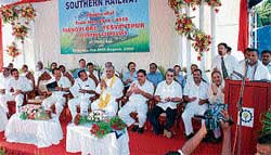 <p>Speaking at the flagging off ceremony of the newly introduced Mangalore - Yeswantpur Tri-Weekly Day Express (6516/6515) at Mangalore Central Railway Station here on Saturday, Muniyappa said that 50 railway stations in the country will be developed as World Class Stations and 375 stations will be upgraded into ‘Adarsh Stations’ with basic facilities. The new initiatives like Multi Functional Complexes at Railways Stations will offer variety of facilities under one roof at selected stations, he added. <br /><br />The introduction of new express service between Mangalore and Yeswantpur via Sakleshpur - Hassan - Tumkur will serve as a vital link between cities that boast of rich historic, cultural and spiritual heritage, Muniyappa said adding that the service will give a further boost to the already buoyant tourism industry and promote the economy of the region. <br /><br />‘Trains have no regional bounds’<br /><br />Muniyappa clarified in his speech that trains introduced by Indian Railways will have no regional bounds. “A train is an asset of the nation. It may run in Karnataka or may be extended to other states. We cannot fix regional limitations on a train,” Muniyappa said hinting that trains can be extended to any destinations. <br /><br />‘Realisation of day dream’<br /><br />Union Minister for Law and Justice M Veerappa Moily said that the introduction of a day train between Mangalore and Bangalore is a realisation of a day dream. “Railway is the visible face of the government. The Railway Ministry under Mamta Banerjee contemplating on growth not only in terms of economic viability, but also based on the social commitment,” Moily said. <br /><br />He said that the Railway Ministry will also consider the demand for Super Fast train between Mangalore and Karwar. He assured that a meeting of senior officials in the Central government will be convened to discuss various demands of the people in the region. <br /><br />‘Separate Mangalore from Palghat’<br /><br />Udupi-Chikmagalur MP D V Sadananda Gowda urged that the railway stations in Mangalore should be separated from Palghat division. Further talking about the proposal of extension of Bangalore - Mangalore night train to Kannur, Gowda said that the benefits sanctioned for the region should not be snatched through the decision. <br />He also demanded that a day train should be introduced between Mangalore and Karwar route. <br /><br />MP Nalin Kumar Kateel, Mangalore City Corporation Mayor M Shanker Bhat, Coastal Karnataka Development Authority Chairman B Nagaraj Shetty, MLC Prathapchandra Shetty, MLAs B Ramanath Rai and U T Khader were present.<br /><br />‘Integrated security system’<br /><br />Railways will introduce an Integrated Security System at the Mangalore Central Railway Station soon. Delivering the keynote address, Southern Railways General Manager M S Jayanth said that the security system comprising CCTV, access control equipment, personal and baggage screening and detection and disposal system will be introduced at Mangalore Railway Station at an estimated cost of Rs 3.5 crore. <br /><br />Jayanth said that the Ministry has given top priority for Southern Railways with regard to development. While 69 trains are being introduced to various destinations across the nation, 19 trains were made available to Southern Railways, he said. <br /><br />Southern Railways has recorded an all time high earning in the passenger revenue by achieving 20 per cent growth in 2008-09, Jayanth said. The number of passengers has shot up from 48.4 crore in 2005-06 to 68.5 crore in 2008-09, he added. <br /><br />He said that the doubling of Mangalore - Shornur route and the construction work of new <br />bridge across Netravathi River is expected to be completed before March 2010. Similarly, the track between Mangalore and Panambur will be doubled at a cost of Rs 150 crore, he said and added that an extra pit-line has been sanctioned for Mangalore Railway Station.</p>