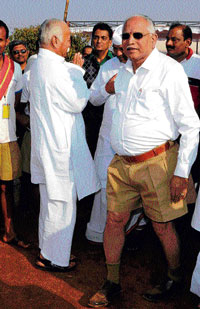 <p>Former chief minister B S Yeddyurappa has categorically denied differences of opinion in the State BJP, and stated that he, along with Chief Minister D V Sadananda Gowda and State BJP President K S Eshwarappa, will tour the entire State shortly to strengthen the party.<br /><br /></p>.<p>Speaking to mediapersons here on Sunday, Yeddyurappa said the leadership issue for the next Assembly elections would be decided by the party central leadership. <br /><br />He also made it clear that he was very much satisfied with the performance of Sadananda Gowda.<br />However, he refused to comment when asked whether Gowda would lead the party in the Assembly elections scheduled for next year. “I do not wish to comment as such matters are finalised by the party high command,” he said.<br /><br />Yeddyurappa also did not comment when asked whether he foresees any important post for him in the government or the party. He said, he would concentrate on strengthening the party organisation to win a minimum of 150 Assembly and 23 Lok Sabha seats.<br /><br />The former chief minister maintained that the political developments in the State were not discussed at the ongoing RSS camp in Hubli. “RSS leaders never interfere in matters of politics. Whatever appeared in the media regarding such discussion is not true,” he said. <br /><br />To a query, he said, he too had not discussed any political issues with the RSS leaders at the camp, or had sought their advice in this regard. “We often seek advice from senior RSS leaders. But this time, I did not do so. I am here to take part in the camp as an ordinary member of the organisation,” he said.<br /><br />Expressing discontent over the Opposition parties opposing the BJP government only for the sake of it, he said, the Leader of Opposition in Assembly Siddaramaiah and KPCC President G Parameshwara should base their criticism on facts. <br /><br />There were 61 developed taluks in the State before BJP came to power and today the number has reached 100. Is it not an indication of development, he questioned.<br /><br />He requested the Opposition to hold a healthy discussion on development of the State in the special Assembly session from January 30.<br /><br />Later speaking in Hubli, Yeddyurappa said he does not aspire for any higher post, and he was just an MLA and BJP worker. “I will shoulder the responsibility assigned by senior leaders,” he said.<br /><br />“Sadananda Gowda is an able chief minister, and I will extend co-operation to him. I have given suggestions sought by him, for preparing the budget. He will present a good budget,” Yeddyurappa said.</p>