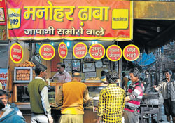 <p>Say Japanese food and sushi is what comes to the mind immediately. But mix Indian and Japanese culinary fare and what you get is a Japanese samosa.<br /><br /></p>.<p>Set in a narrow lane of Old Lajpat Rai Market of Walled City, Manohar Dhaba running since 1949 serves the most unusual dish in the world – Japani samosa – served with chole. The combination is as unique as the dish. When asked about this Japanese samosa, JK Dogra, a patron here says, “Many years ago I got introduced to this samosa and fell in love with it. I have not been able to find a dish like this anywhere.”<br /><br />Owner Umesh Kumar shares, “My tayaji, Lala Manohar Lal started making Japani samosa in Lahore and owned a shop at Nispat Road opposite Dyal Singh College in pre-independent India. After partition, he came to India and ended up being in Chandni Chowk area, where he began his Japani story again.” Talking about the texture of Japani samosa, Umesh says, “Every Japani samosa has 60 layers, 30 on each side. The layers are so fine that you will not be able to count them even with a magnifying glass.” Inside the samosa, one finds a simple stuffing of mashed potatoes and peas with fresh coriander and pieces of green chilies.<br /><br />Even the chole or Pindi chana served along with this unusual snack has an unmatched taste. Umesh says, “We put only spices and ghee in our Pindi chana and keep them over burning coals. We don’t use the gas stove. This is what makes them the best.” Even Indira Gandhi could not resist trying this one of a kind samosa. Umesh recollects an incident from his childhood, “Indira Gandhi was fond of cooking and her personal assistant came to my father to get the technique for making the samosa.”<br /><br /> Customers Harish and Renu Anand from Gurgaon say, “We have been eating Japani samosa for the last 40 years but after we shifted to Gurgaon from Daryaganj we miss eating this delicacy. There is absolutely no snack that can beat its taste. We have come here after a gap of three years and have also got some samosas packed for our kids.”<br /><br />A usual samosa may become soggy and lose its taste in a day but these samosas remain crisp till for as long as 15 days. Umesh says, “The preparation starts at 4 am and takes three to four hours, unlike a normal samosa.” <br /><br />H S Chadha travels from New Rajinder Nagar to get a taste of these Japani samosa. He says, “We have been eating Japani samosa since it was priced at Re 1 and now it costs Rs 10 but tastes just the same.”<br /></p>