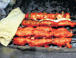 <p>The list of mouth-watering exotic culinary fare in Delhi is endless and adding another delicacy to this existing list is chaap. <br /><br /></p>.<p>The City serves a variety of chaaps like: soya chaap, malai chaap, Hariyali chaap, aachari chaap, chaap rolls and tawa chaap, to name a few. Fortunately, vegetarians need not feel left behind now. <br />Welcome to Chaska Chaap, a quaint little shop in Jangpura that sells more than 200 chaap sticks every day. The USP of this place is however the tawa and malai chaap that customers make a beeline for. <br /><br />“I belong to a Punjabi family and chaap is a food of Punjabi origin. I have grown up eating chaap cooked by my mother. I thought why not bring this delicacy to the streets of Delhi? So three years ago I came up with this stall. Within no time, I have established a good business as I have more than 300 enthusiastic customers coming every day to eat here,” explains Love Arora, shop owner.<br /><br />A chaap is essentially soaked with malai (cream), curd and other spices for hours to get the right taste. Then chaap sticks coated with mild spices are roasted in barbecue and served with onion, mint sauce and a dash of lemon. Ganesh, cook at Chaska Chaap explains, “We prepare all kinds of chaaps but what draws people here in hordes is the tawa chaap which is grilled in earthen oven and then mixed with gravy on tawa and served with rumali roti. We get maximum orders for this chaap.”<br />Because of a wide variety of vegetarian chaaps available at Chaska Chaap, the sales at this food stall increases by 50 per cent on Tuesdays and Thursdays as most Hindus prefer to eat only vegetarian food on these days. <br /><br />The rates vary from Rs 50 to Rs 150 for a plate of chaap. The place also gets flooded after navratras to gorge on finger-licking tandoori and Afghani Chicken chaaps.<br /><br />“I visit this stall with my friends almost every day and it is my favourite place to eat my evening snacks. This shop is not very old but it is the best stall serving chaap in this area. I am a vegetarian so malai and soya chaap are my favourite here,” says Balwinder Singh, a patron.<br /><br />Chaaps taste best with rumali roti and if cooked longer, can also be served as a dry snack.<br /></p>