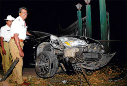 <p>In a case of alleged drunken driving, a 24-year-old MBA student, Gurudarshan, crashed his car into one of the gates of Cubbon Park on Sunday night.<br /><br /> </p>.<p>There were no injuries reported. Gurudarshan, after a night out with a friend, was driving from Vittal Mallya Road to Sadashivanagar when he tried to rush through the gates of Cubbon Park.<br /><br />He soon realised that the gates were closed. Gurudarshan tried to take a U-turn and rammed into the adjacent gates.<br /><br /></p>.<p>The Cubbon Park police, who came to the spot, arrested him and took him to Victoria Hospital for a alcohol test before registering a case. Gurudarshan was later released. He is said to be a resident of Sadashivanagar.<br /><br />Mystery shrouds death<br />A 42-year-old man died under mysterious circumstances while playing a game of dice near M S Nagar Paost at Banaswadi on Sunday. <br /><br />The deceased, Venkatesh, was a dailywage worker. Police said Venkatesh had a fight with one of the players over the stake money of Rs 50. <br /><br />Within a few minutes of the fight, a call was made to the local police station informing about the death of Venkatesh. <br /><br />There were no injury marks on the body and hence, it is yet to be ascertained whether the death of Venkatesh was a natural death or a murder. The police are waiting for the post mortem report to proceed further.</p>
