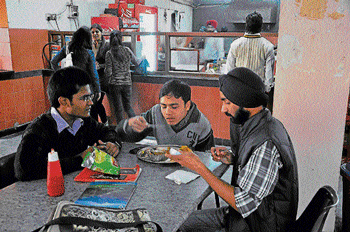<p>When they decide to bunk, students of Sri Gobind Singh College of Commerce (SGGSCC) don’t like to go very far.</p>.<p>For them, their small yet cosy canteen is the best place to hang out and take a break. In spite of its limited culinary fare, the canteen – established in 1984 – is abuzz with students every day. <br /><br />“Whenever we decide to bunk a couple of lectures, we come and sit in the canteen. Usually, it is very difficult to find a place to sit during the afternoon on weekdays. It is a bit empty on Saturdays as most courses do not have classes on weekends,” says Sahiba Gunani, first year student of B Sc computer science.<br /><br />But the students here crave for more variety in the menu as currently the canteen only offers snacks like vegetable rolls, bread pakora, samosa and chole kulchey. “The canteen is big enough and offers food at reasonable rates. There should be more food items on the menu. What we miss is a complete meal like thali and other snacks such as pizza and pasta,” says Umang Arora, B Com (pass) student.<br /><br />A majority of the students here feel that the canteen does not offer a complete meal and has fewer items on the menu because of lack of hostel facility. However, a huge draw for them are the cheap rates at which the snacks are available here. “List of good items may be short in our canteen, but it is surely a hit in terms of offering hygienic food at reasonable rates. </p>.<p>We get everything within Rs 30,” says Ekta Nijhawan, another first year student of B Sc computer science. Outsiders who come to the college are also all praises for the canteen for its hygiene and inexpensive food. “The good thing is that food here is hygienic and is not very expensive even to outsiders,” expresses Sanjeev Yadav, who comes to the college as a member of its cricket academy.<br /><br />The college also has Cafe Day Express outlet that sells only snacks like vegetable puff, chicken burger, mayo burger, chocolates, juices, coffee, tea, brownies and cakes, which are not as cheap as the canteen food.<br /><br />In the absence of variety in their college canteen, students sometimes drop by at Netaji Subhash Place market complex or Pitampura Dilli Haat which are the closest hang out zones in the proximity of the college. <br /><br />“Whenever we get bored with the canteen food, we go to Netaji Subhash Place market place complex or Dilli Haat,” says Ajay Mann, another student of B Sc computer science.</p>
