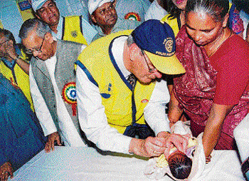 <p>Members of Rotary International have set up 8,000 polio booths and roped in 30,000 health workers across the city to immunise 2.5 million children against polio.<br /><br /></p>.<p>The week-long campaign, starting Monday, features door-to-door verification in all regions. At least 225 million polio vaccines were provided via 7,09,000 vaccination booths set up across the country.<br /><br />According to a senior official, teams from the UK, France, US and Netherlands visited high-risk polio areas in and around Delhi. Apart from administering vaccines and holding wellness camps, they asked people not to ignore polio vaccination for their children.<br /><br />“While a majority of booths across India were set up by the government, Rotary also set up some booths at transit points, such as bus stands and railway stations. A 36-member Rotary team from Oakland in the US visited Ghaziabad, while a 45-member team from the UK went to the Capital and Karnal in Haryana),” said the official. <br /><br />He said the Netherland’s team was sent to Bijnour and Moradabad. “This team raised $10,000 to donate 50 wheelchairs, 40 tricycles and 28 pairs of crutches for polio victims,” the official said.<br /><br />According to Deepak Kapur, chairperson of Rotary International India’s National PolioPlus Committee, 174 million children have been immunised and 209 million homes were visited during door-to-door campaign.<br /><br />“The campaign’s extensive efforts towards reaching every child with the vaccine has to be sustained till we achieve total eradication,” said Robert S Scott, chairman of International PolioPlus Committee.<br /><br />“Keeping this in mind, Rotary’s contribution to the global polio eradication effort constituted nearly 14% of all contributions to the global budget in 2010,” said Scott.<br /><br />As part of their commitment to social mobilisation in India, the 29th Mega Wellness Camp in association with Abbott Laboratory was held from February 18 to 19 at Arya Samaj Mandir in Kirti Nagar. <br /><br />“At least 2,000 beneficiaries came and doctors gave them free medicines. Patients also got free testing for cataract, thyroid, bone density and diabetes,” said the official.</p>
