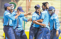 <p>As debuts go, this one has to be right up there with the best, even if it came against a lowly side on a slightly encouraging surface.<br /><br /></p>.<p>The spectators, just a handful of them of course, had barely settled down in their seats when the day’s proceedings had already begun to wind up, thanks largely to Ronit More. <br /><br />The paceman, playing his maiden match for the State at the senior level, bagged a five-wicket haul as Karnataka got off to a winning start, crushing Goa by eight wickets before lunch in their KS Subbaiah Pillai opener here at the Chinnaswamy stadium on Monday.<br /><br />Opting to bat on a pitch that had good bounce and carry, a listless Goa were shot out for a paltry 54 in 20.3 overs. Karnataka then coasted to victory in 12.3 overs with 225 deliveries to spare. <br /><br />The win would have been even more impressive had skipper Robin Uthappa and Ganesh Satish not thrown their wickets away in a modest chase. However, another debutant Karun Nair and Manish Pandey, bowled off a free-hit delivery, saw the team home without further damage. The victory gave Karnataka five points, including a bonus, while the visitors were docked one point. <br /><br />Goa weren’t expected to make life all that difficult for Karnataka but the manner of victory – achieved with 40 minutes still left for the scheduled lunch break – might have come as a pleasant surprise to Uthappa and company.<br /><br />Much of the credit for Karnataka’s comprehensive victory should go to young More, who ripped through the Goan batting with stunning returns of six for 18 spread over two spells. While the Belgaum lad was reasonably impressive in his opening spell (4-1-15-2), it was his 2.3-over second burst which saw Goa plumb to 54 all out from a not-so-flattering 49 for six. <br /><br />The right-arm pacer initiated the destruction with a lifter in his very first over that caught opener Sagun Kamat by surprise and took a feather en route to Ganesh at first slip after slightly shaping away from the left-hander. The 20-year-old then removed the most well-known of the Goan batsmen, Swapnil Asnodkar, who appeared unconvincing during his brief stint.<br /><br />More and senior partner Abhimanyu Mithun (2/21) struck in tandem on four occasions during their combined spell of nine overs at the start to leave the visitors gasping for breath. While the slightly greenish pitch did aid appreciable bounce, there was nothing diabolical in it that the Goan score card would otherwise have you believe. Jagging the ball at a decent pace, the two right-arm quicks had the visiting batsmen in all sorts of trouble and with left-arm spinner KP Appanna striking early, half the side was back in the hut in just about 11 overs.<br /><br />Reagan Pinto, the only batsman to reach double digits with a painful 19, showed that with a little more application, the Goan innings would have attained a semblance of respectability but Karnataka weren’t complaining and More most certainly wasn’t. After Stuart Binny, strangely taken off the attack after just one over as first-change, struck on his return to remove rival skipper Shadab Jakati, More completed the carnage. The youngster took just 15 balls to wipe out the remaining four batsmen and set up the home side’s romp.<br /><br />Score Board<br />GOA: Sagun Kamat c Satish b More 3 (5b), Swapnil Asnodkar c Uthappa b More 5 (11b), Vidyadhar Kamat lbw Mithun 7 (5b, 1x4), Reagn Pinto c Nair b More 19 (51b, 2x4), Rahul Keni c Gautam b Mithun 2 (7b), Saurabh Bandekar b Appanna 5 (8b, 1x4), Shadab Jakati b Binny 6 (12b, 1x4), Robin D’Souza c Gautam b More 1 (4b), Amit Yadav c Gautam b More 3 (16b), Ganeshraj Narvekar (not out) 0 (2b), Gaurish Gawas c Nair b More 0 (1b). Extras (W-3) 3. Total (all out, 20.3 overs) 54.<br />Fall of wickets: 1-9 (S Kamat), 2-17 (V Kamat), 3-19 (Asnodkar), 4-24 (Keni), 5-36 (Bandekar), 6-49 (Jakati), 7-50 (D’Souza), 8-53 (Pinto), 9-54 (Yadav).<br />Bowling: Abhimanyu Mithun 6-1-21-2, Ronit More 6.3-1-18-6 (w-3), Stuart Binny 5-1-4-1, KP Appanna 3-0-11-1.<br />Scoring pattern: 5 overs: 19/3; 10: 35/4; 20: 54/8; end of innings: 54 all out in 20.3 overs. Power Play 1: 1-10 overs: 35/4; Power Play 2: 16-20 overs: 5/3; Power Play 3 (not taken).<br />KARNATAKA: Robin Uthappa c Jakati b Gawas 23 (20b, 4x4), Karun Nair (not out) 15 (36b, 2x4), Ganesh Satish b Jakati 1 (5b), Manish Pandey (not out) 11 (15b, 2x4). Extras (NB-1, W-4) 5. Total (for 2 wkts, 12.3 overs) 55.<br />Fall of wickets: 1-32 (Uthappa), 2-37 (Ganesh).<br />Bowling: Saurabh Bandekar 3-0-17-0 (w-2), Robin D’Souza 3-0-15-0, Gaurish Gawas 3-0-13-1 (w-2), Shadab Jakati 2-1-2-1, Ganeshraj Narvekar 1-0-7-0 (nb-1), Amit Yadav 0.3-0-1-0.<br />Scoring pattern: 5 overs: 26/0; 10: 41/2; end of innings: 55/2 in 12.3 overs.<br />Power Play 1: 1-10 overs: 41/2; Power Plays 2 & 3 (not taken).<br /></p>