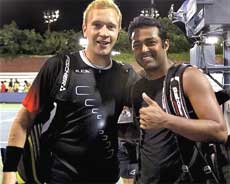 <p>The fourth seeds handed a 7-6 (13/11) 7-6 (7/4) defeat to Hanescu and Trifu in the gruelling match that lasted for 1 hr 47 minutes last night.<br /><br />It was a see-saw battle from the very beginning but Paes and Dlouhy held their nerves to bag the first set through a tie-breaker.<br /><br />In the second set, the Romanians tried hard to claw their way back into the proceedings but the Paes and Dlouhy foiled their opponents' bid and rounded off the tally in their favour.<br /><br />The Indo-Czech duo will now take on winner of another first round match, in which Spainsh pair of Nicolas Almagro and Ruben Ramirez Hidalgo will lock horns with Teimuraz Gabashvili and Dmitry Tursunov of Russia</p>