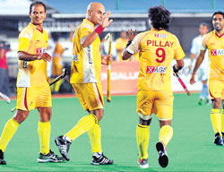 <p>Len Aiyappa’s scintillating hat-trick spurred Karnataka Lions to a hard fought 3-2 win, their first, against Chandigarh Comets in their World Series Hockey match in front of a sizable crowd at the KSHA stadium on Tuesday.<br /><br /></p>.<p>Aiyappa’s goals came in the 10th, 19th and 26th minutes of the match, while Bharat Chhikara struck for Comets in the 37th and 63rd minutes. <br /><br />The first quarter saw both the teams using long passes to take the attack to the opposition but failed to break the deadlock. Jarnail Singh and Dhanraj Pillay came up with a couple of good moves on the right but failed to convert the half chances. Aiyappa then came to the party, sounding the board in the tenth minute through a penalty corner much to the delight of the noisy crowd.<br /><br />Aiyappa increased the lead with another drag-flick in the 19th minute to consolidate the Lions’ position. Comets’ defence struggled to withstand the onslaught with Aiyappa and Arjun Antil on the prowl for the Lions.<br /><br />Aiyappa’s relentless pursuit met with success again in the 26th minute when he converted his third straight PC to complete the hat-trick.<br /><br />Bharat Chikkara then pulled things back a bit for the Comets with a fine reverse-hit running in from the right flank in the 37th minute.<br /><br />The fourth quarter saw Jarnail Singh threaten to score on a couple of occasions only to struggle with his finishing. Comets’ custodian Swinder Singh did a good job under the bar and avoided any further damage.<br /><br />Chikkara was in no mood to give up as he slammed a powerful short off a short pass from Rehan Butt in the minute to make it 3-2 in the 63rd minute.<br /><br />Mumbai down Chennai<br /><br />Playing their third match in four days, a tired and jaded Chennai Cheetahs went down 2-4 to a resurgent Mumbai Marines at the M Radhakrishna stadium in Chennai.<br /><br />The Cheetahs, who had won both their previous two games in Chandigarh and Delhi, ran out of steam after scoring the opener in the fourth minute through penalty corner specialist Imran Warsi. Mumbai, who led 2-1 at halftime, shrugged off the early reverse and hit back through goals by Devender Walmiki (12th), Anup Anthony (24th), Ajmer Singh (48th) and Bimal Lakra (52nd).<br /><br />It was Mumbai’s second win in four matches while Chennai tasted their second defeat from four outings.<br /><br />Playing their first home game, the Cheetahs, who arrived home from Delhi only in the morning, began well when Warsi converted their first penalty corner in the fourth minute, but thereafter, the hosts huffed and puffed in the hot and humid conditions.<br /><br />In contrast, Mumbai were the fresher side and made the best of the openings to emerge deserving winners.<br /><br />An avoidable infringement by Warsi, who played the ball after the whistle was blown for a foul inside the Chennai 25-yard area, led to a penalty corner that Walmiki converted for the equaliser.<br /></p>