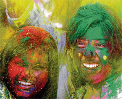 <p>Some tried to run, while others tried to hide but in the end all of them ended up in a Holi mess.<br /><br /></p>.<p>Though Holi arrived inconveniently in the middle of the week this time, it didn’t stop many from getting onto the streets and having a blast. <br /><br />On Brigade Road, Shruti, a student at St Joseph’s Commerce College, grinning ear to ear said she tried her best to get away from her ‘rowdy’ friends. <br /><br />“I tried to hide in a restaurant but they were waiting for me when I got out.” She said all of it was good fun but she’d have a lot of explaining to do when she got home. For Umesh, problems were of a more immediate nature, he was trying to wash egg off his hair. “A friend of mine smashed an egg on my head and now I just can’t seem to get rid of the stink,” he said. <br /><br />But most people are not celebrating just yet. “Since both my wife and I work for multinational companies, we are putting off major celebrations until the weekend,” said IT professional Prashant Verma. Most gated communities and apartment complexes were also quiet on Thursday.<br /><br />According to Ravi Jha, residing in Godrej Apartments on Bellary Road, grand celebrations at the apartment are planned for Sunday. <br /><br />“Holi is a lot more fun when there are a lot of people involved, so I don’t mind waiting for another couple of days,” he said. <br /><br />According to one tradition, Holi is the celebration of Prahlada’s survival and death of demoness Holika. <br /><br />Prahlada’s father Hiranyakashipu, in one of the many attempts to kill his son, asked his sister Holika to sit on a bonfire with Prahlada on her lap in the hope that this would kill Prahlada. But Prahlada, who chanted Vishnu’s name, survived and Holika perished.<br /></p>