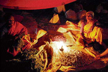 <p>City Municipal Council yet to provide an electricity pole</p>.<p>The weekly shandy that draws lot of crowds on Thursdays, does not have proper basic facilities. <br /><br />Adjacent to the new bus stand in the town, the shandy is the only major destination for the residents here to purchase fresh vegetables and spinach, grown in surrounding villages. <br /><br />But vendors here have no power facility to conduct the business during nights. Many resort to use petromax and gas lights. <br /><br />The business is hectic during morning, but people, especially, senior citizens, stay on till night, to earn a penny more.<br /><br />No concern<br /><br />Thousands of customers who come to shop during nights curse the authorities concerned for failing to ensure a minimum facility like an electricity pole. <br /><br />Difficulties<br /><br />“We find it difficult to purchase vegetables or grains in the night. There are chances of vendors cheating us,” said a customer, who is regular here. But it is equally challenging to sell too. <br /><br />“We have to depend on mobile phones or candles to make the business. Customers won’t trust us easily, especially during the night. <br /><br />Besides, many try to cheat us by taking more than what they have paid for,” complained a vendor. <br /><br />The CMC is yet to build an exclusive complex for market. As this is being delayed, no measures have been taken to relocate the vendors as well, said S C Chowdappa. <br />But despite odds, the vendors at weekly shandy in Kolar continue to go on with their business without electricity.<br /> </p>
