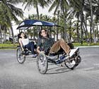 <p>Imagine a hand-made ride, built with passion, a sunroof, two seats, three wheels and you have what Vijay rigged for Niyatee. Technically, it’s not a bike but a trike. Make that a Recumbent Tandem Trike with a Sunroof. And it’s got turning lights. All that’s missing are seat belts!<br /><br />Vijay, who makes furniture for companies like AOL, IBM, Target, Shell and Suzlon, confesses that he got into cycling just 9 months ago when he bought a bicycle for Niyatee to commute to office. “It looked like a good idea, so I bought one as well,” says Vijay. The complications began when he became fascinated with building a quad bike, but somehow stumbled upon a trike design with two wheels in front. Vijay designed a frame for Indian roads within 3 days and when the first trike was ready —it was a smaller yellow one meant for a single rider — they took it out for regular rides on Sunday mornings to Lalbagh. “We were a bunch of laid back bikers and a recumbent trike seemed perfect, except that Niyatee could not handle the attention she got on the roads,” says Vijay. The solution? A Tandem Trike that both could ride and divide the attention! “Riding together is a much better feeling,” says Vijay. <br /><br />The tandem has a sunroof that can easily be replaced with a carrier — you can put a kayak on it, transport wooden planks, carry shopping, anything. It’s ideal for gated communities that are proliferating in Bangalore and holiday resorts practically anywhere. Who knows, a company like Infosys which has bicycles in its Electronic City campus and runs golf carts for its guests, may want a couple of these as well.<br />Given his playful nature, Vijay is busy cooking up stuff for future editions of the trike: the next model may have a pedal-powered mobile charger, a wind-powered lighting system…nothing is beyond his imagination. He has begun to get inquiries with people asking him the pricing for the tandem. “One of these days I have to get down to the boring part of figuring out what this costs,” says Vijay.<br /><br />Arun Katiyar is a content and communications consultant. He is also a trustee of the RideACycle Foundation (www.rideacycle. org). He prefers to ride a Merida 880-24.</p>