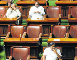 <p>The crisis in the ruling BJP was well reflected in the Legislative Assembly on the opening day of the budget session on Tuesday. Hardly 45 BJP MLAs were present and the combined strength of the Opposition parties was about 52.<br /><br /></p>.<p>Leave alone ministers, even Chief Whip Siddu Savadi was not present in the House. <br /><br />Of the 23 ministers, including Chief Minister D V Sadananda Gowda, in the Cabinet, only 14 were present. <br /><br />As many as 70 legislators in the Yeddyurappa camp kept off, while only two senior ministers attended the House to pay homage to BJP senior leader V S Acharya. <br /><br />Rural Development and Panchayat Raj Minister Jagadish Shettar and PWD Minister C M Udasi, MLAs Chandrakanth Bellad and Krishnaiah Setty from Camp Yeddyurappa sat through the session, which lasted for two-and-half hours. <br /><br />The legislature had only one agenda - to pay homage to Acharya, who died on February 14 while attending an official function in his capacity as higher education minister. Acharya, a stickler to rules, had served the party in various capacities for nearly four decades.<br /> <br />However, Yeddyurappa had no time to pay homage to his one-time guide as he confined himself to a luxury resort, pressing the party central leaders for a suitable position. Shettar, unmindful of the instruction issued by Yeddyurappa to keep off, attended the session and paid tributes to Acharya.<br />Sadananda Gowda had to face the jibes of the Congress for the poor attendance of the BJP members in both the Houses of the Legislature. <br /><br />Seeing the empty Treasury Benches, Opposition Leader in the Assembly Siddaramaiah said Gowda should resign as he had lost the ‘confidence’ of the House, and Karnataka was facing a constitutional crisis. <br /><br />He also took serious objection for not allowing Question Hour. <br /><br />In response, Gowda said: “I am not denying that there are certain issues within the party. But, let us pay homage to Acharya. I am not going to run away from the House.”<br /><br />In the Council, Leader of Opposition Motamma took a dig at the BJP’s ‘resort politics’ and asked if the government still existed. <br /><br />The BJP members argued that the internal matters of the party should not be discussed in the House. <br /><br />The Congress wanted to know why a good number of ministers were absent, and said that the ruling party indulged in caste politics. <br /><br />In his reply, Gowda said the concern of the Opposition is fair indeed, but, the resort meeting is the party’s internal matter and that would not affect the Council proceedings. <br /><br />Right man in wrong party<br /><br />The Congress leaders, during the obituary reference, said Acharya was a ‘right man in a wrong party’. <br /><br />They criticised Yeddyurappa for not paying tribute to the former minister in the House. <br />Siddaramaiah said BJP had lost its “intelligent” politician. “It’s regrettable. He was a right man in a wrong party,” he said.<br /><br />Congress MLA Srinivas Prasad said it was also unfortunate that Acharya who had concertedly built the BJP in the State, was forced to stand by and watch the party crumble ever since it came to power.<br /><br />BJP MLA Shankarlinge Gowda too slammed Yeddyurappa for his absence. <br /><br />“He should have left his politicking and come and paid his tribute to Acharya. He has shown utter disrespect to the former minister,” he added. <br /><br />The chief minister said Acharya was former prime minister Atal Behari Vajpayee’s “most favourite” Karnataka politician. Eshwarappa said Acharya was a true social reformer. The Council too paid tributes to Acharya.</p>